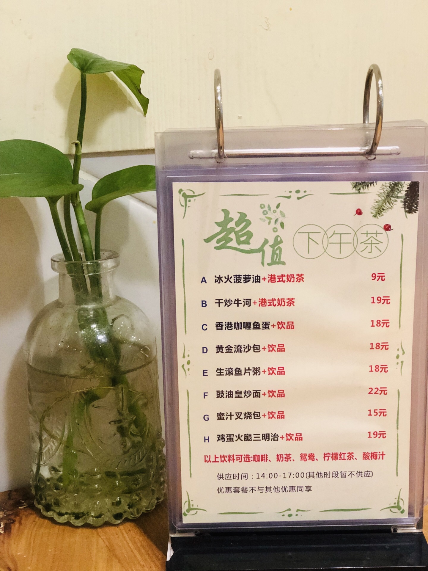 上个礼拜五大风大雨️,下班只能就近吃个晚饭,再囤点粮,周末宅家里静候“利奇马”; 十年以上的老店了,虽然门面比以前小了,还能在这条马路上存活下来,真是很不易了; 店里布置清新自然风,不过地板有黏糊糊的,下午茶和商务午餐非常划算,尤其是下午茶,9块起; 干炒牛河,牛肉给的大方的,炒的入味,也不太油腻; 干煸四季豆,炒的挺嫩的,肉末也很多; 明炉烧鸭,鸭肉嫩的,皮也脆,稍稍咸了点; 菠萝包,个头不算大,内层已经涂了一层黄油,微波炉转一下,香喷喷,好次哒; 菜量特别大,周六吃了一天才全部吃完这些菜!
