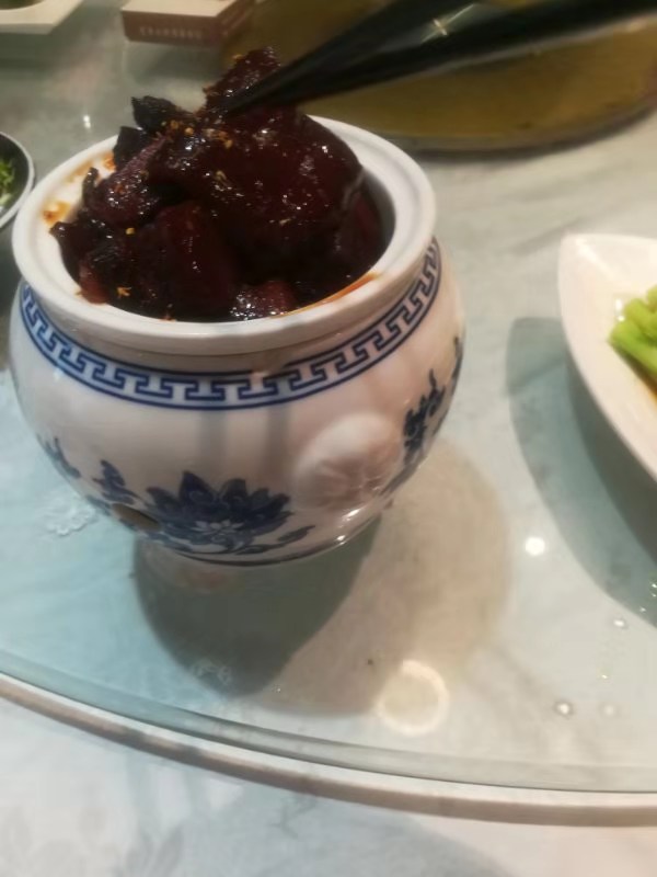 喜欢红城阁的环境,红城阁的菜,每次去吃饭总会点一锅本帮红烧肉。那肉看色泽就特别诱人,香香甜甜的,咬一口满嘴都是小时候妈妈红烧肉的味道,肥而不腻,甜滋滋的,吃到最后再来碗米饭,把肉汁倒入饭中搅拌一下,一勺一勺往嘴里送,太美味了,减肥就留下次吧。