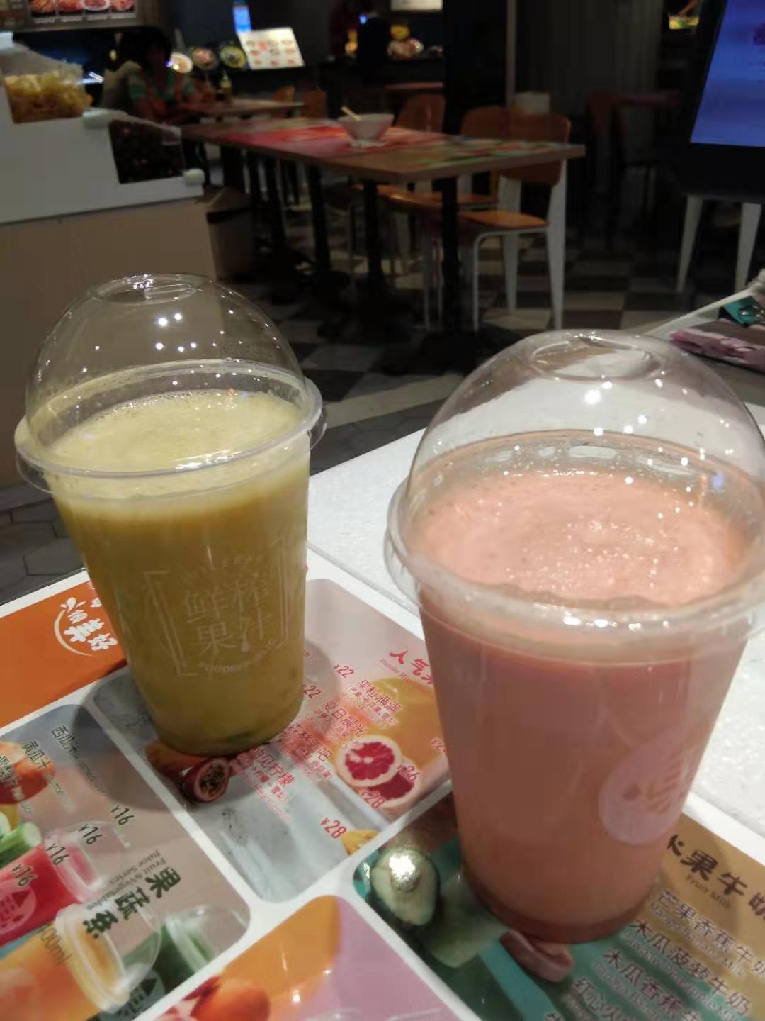 网站福利了,一元一杯的鲜榨果汁,已经不能再棒一点点了,买了两杯,今天的维生素和膳食纤维是足够了,水果汁并不太冰,要冰可以提前和服务员说好,建议选橙汁打底另一种挑自己喜欢的就是,这家的橙非常的甜的,套餐里面不能选红心火龙果有点可惜。