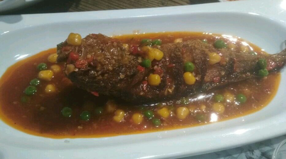 坐公交过去的,离车站大概四五百米的样子,临街门面,很显眼,里面灯光偏暗一点,两层楼,坐的楼上,服务还是不错。很喜欢吃那个大峡虾很不错。