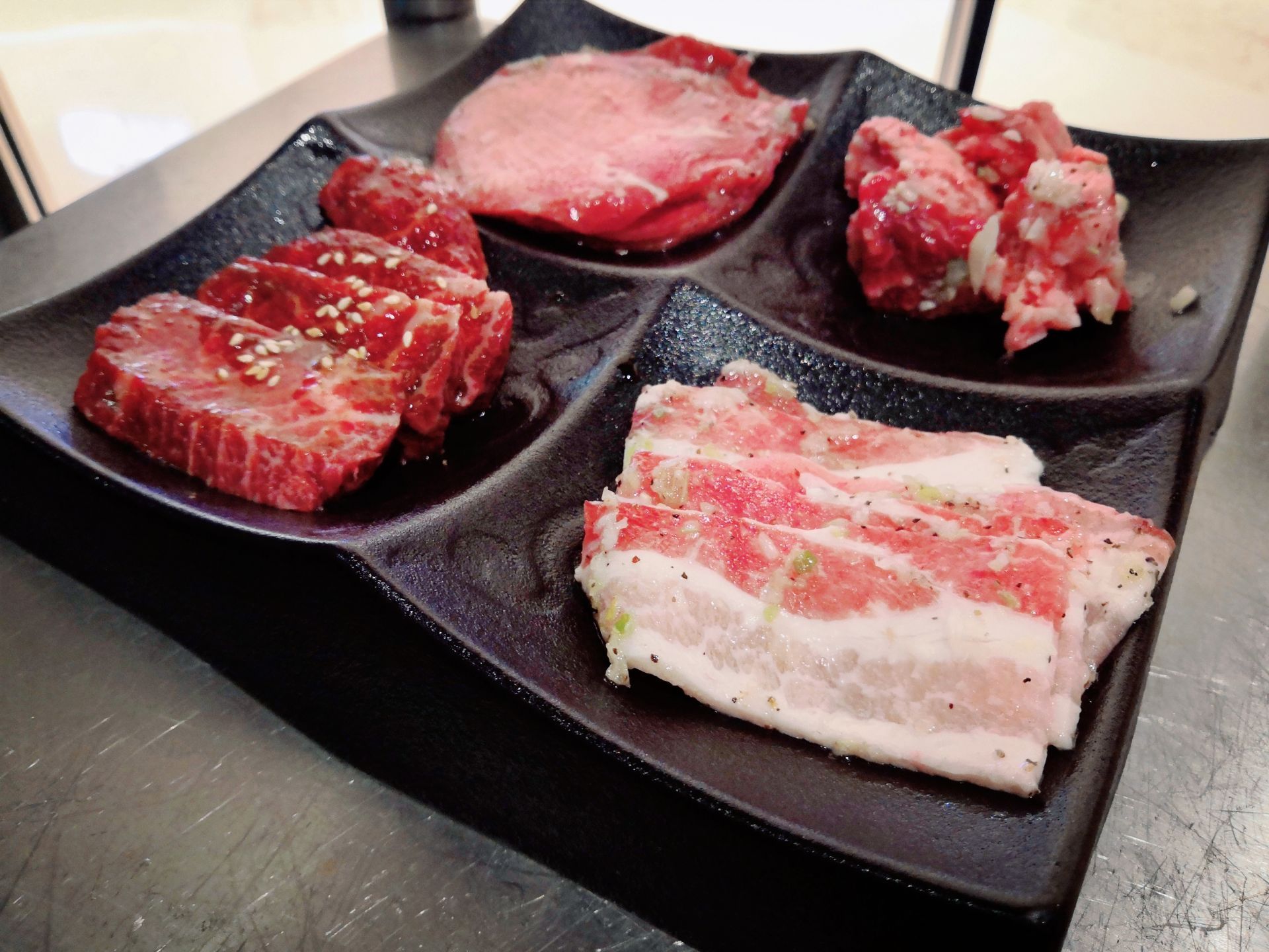 焱铁烧,之前在广州旅游时看到的是一家现代派的烤肉料理店,当时行程匆忙没有吃成,但是最近在厦门万象城的L3层发现这里就有一家,于是周五下了班就和小伙伴一起过来啦,工业风的装潢,现代简约,不错的用餐环境哦。 团了338元的招牌双人餐,有好多款肉肉,菜品丰盛,非常超值喲~肉质看新鲜,纹理清晰,开始烤没多久就已香气扑鼻了。特别喜欢赤身肉组合,肉色泽诱人,鲜嫩多汁,搭配酱汁更加好吃。还有中落小排,也很软嫩多汁,一点点的焦香与肉汁融合,美味呀。主食米饭也不错,可以卷着海苔一起吃。店员的服务态度不错,很周到。 哈哈''肉食爱好者的不错选择,推荐!