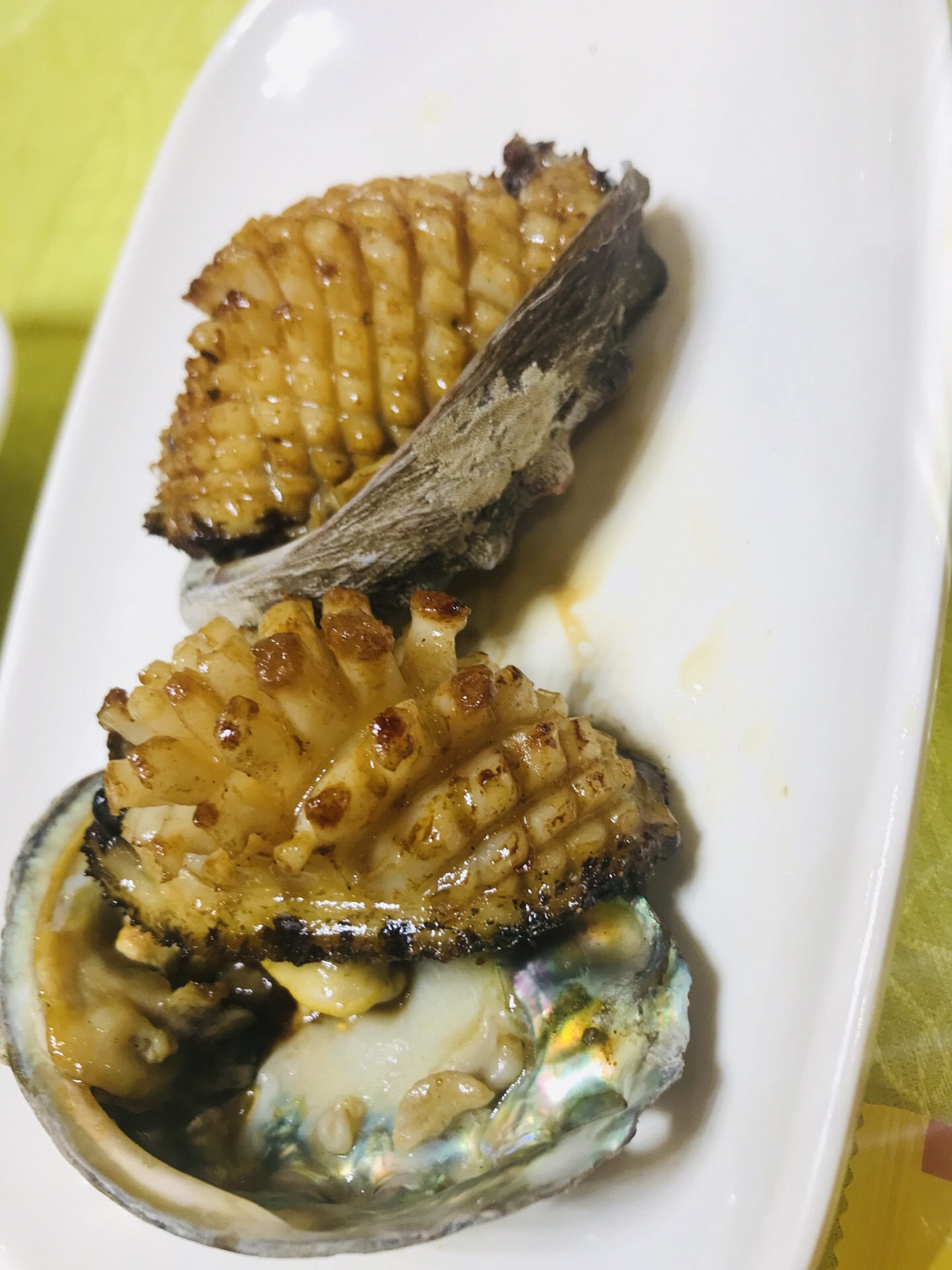 口感清爽,味道不错!(后附细节图) 「烤大鲍鱼」 个头还行,烤后的鲍鱼,我个人觉得比蒸的好吃一些