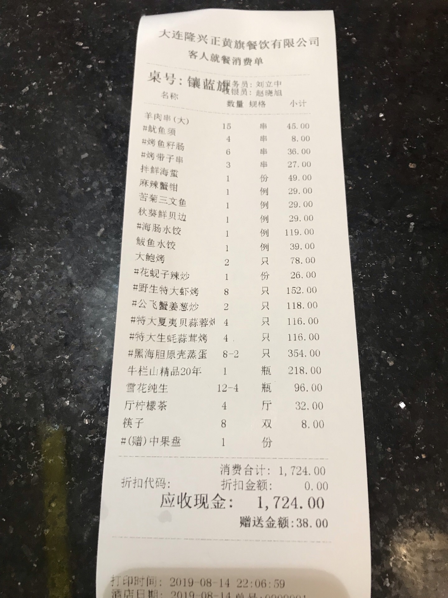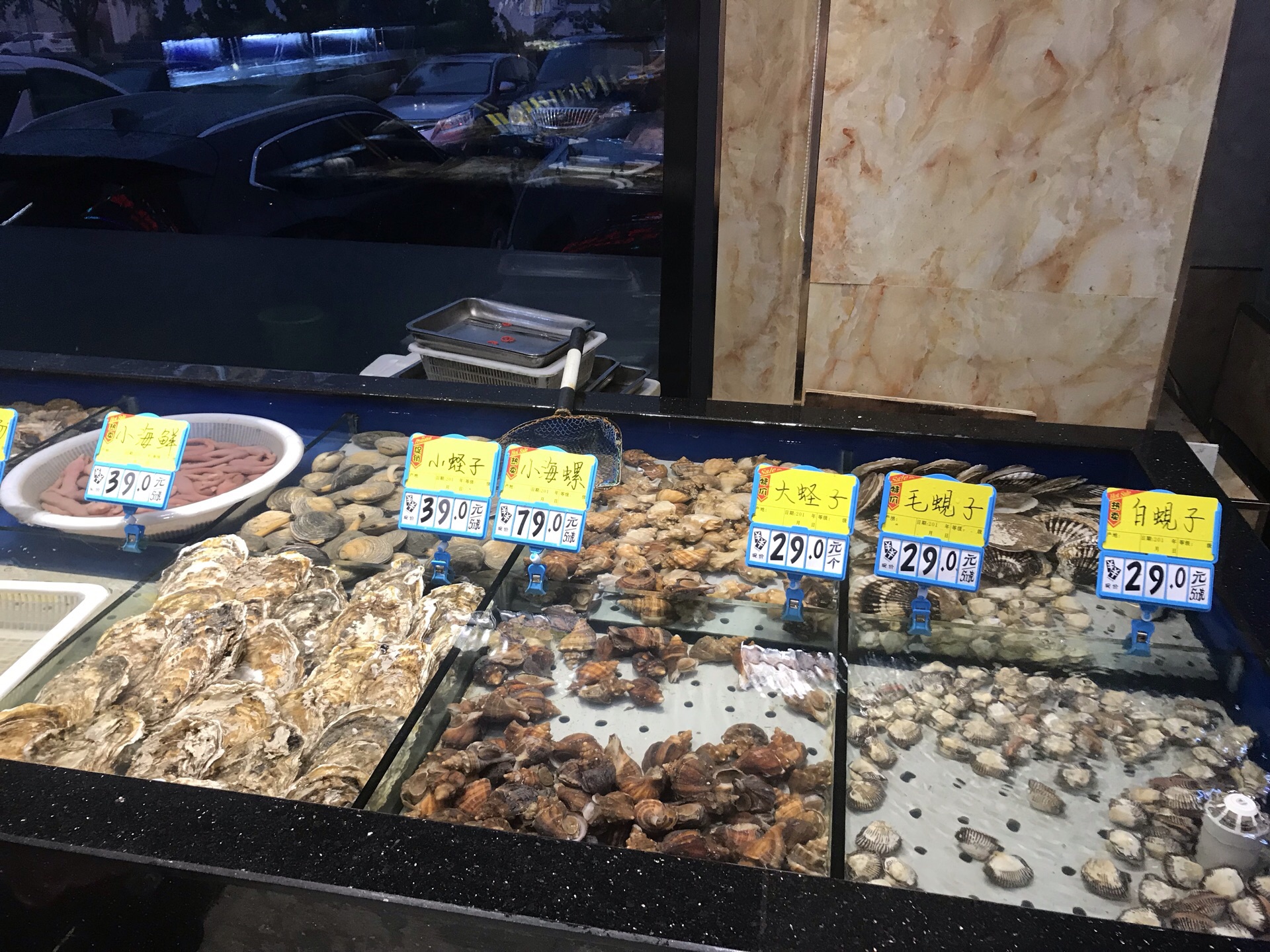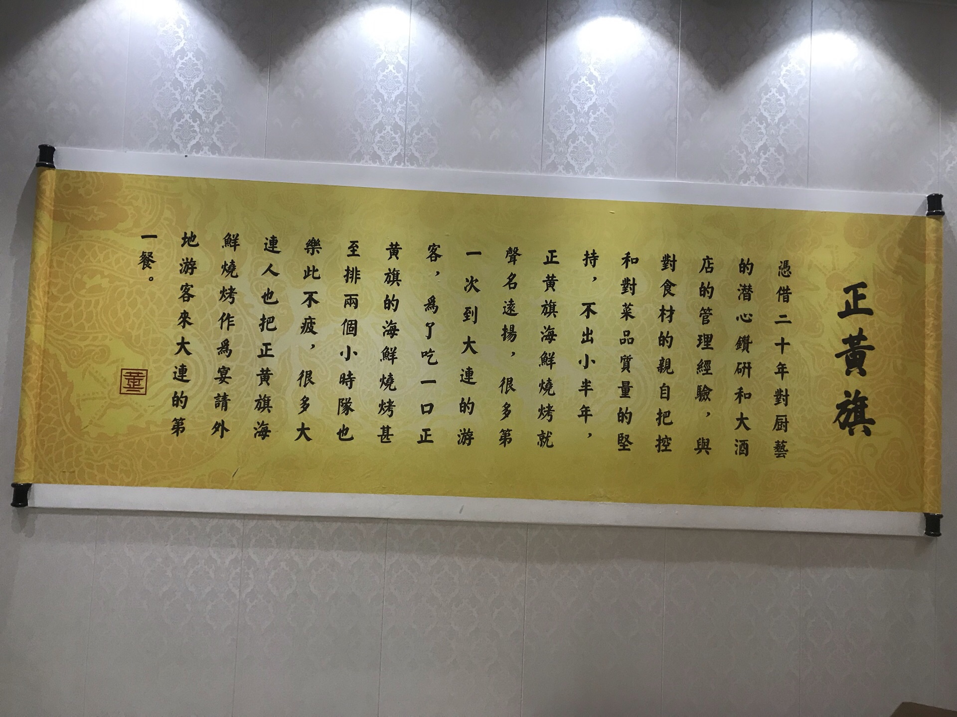 大连美食-海鲜烧烤-正黄旗海鲜烧烤大排档(甘井子万达东市店) 概况[拔草] 来大连吃了好几顿海鲜了,今天知道这家老店是吃海鲜烧烤的,所以满心欢喜的跑来!离市区有点远,离机场还挺近! 位置[疑问] 万达东市这边,临街一楼,不难找! 交通[鸭子] 建议开车或是打车!地铁也行(2号线,虹港路站A出口) 价格[红包] 适中的价格,与菜品质量差不多 菜品[糖果] 整体菜品口感不错,因为海鲜为主,所以部分海鲜通过烧烤后,另有一番风味! 「海肠水饺」 必吃之一,虽然很贵!119元一份好像!不过谁叫这是人家的特色呢!海肠馅不是到处都可以吃到的!口感清爽,味道不错!推荐体验!(后附细节图) 「烤大鲍鱼」 个头还行,烤后的鲍鱼,我个人觉得比蒸的好吃一些!如果没吃过,推荐体验 「黑海胆原壳蒸蛋」 来大连不吃个海胆都觉得对不起自己,不过这几餐因为台风的原因,所以一直没吃上!本次体验,还好来的早,点了八个,只有六个了,全部拿下!口感怎么说呢,还行!能明显吃到海胆!!比原来去SY吃的假海胆好多了! 「烤鱼籽肠」 有点点像烤香肠,不过口感有一些差异!味道还行吧,个人觉得吃几口还是可以的,多了貌似有点腻! 其他的相关烧烤,凉菜等,没有太大的区别,和平时能吃的基本一样,就不一一描述了! [环境][玫瑰] 二层楼!一楼大厅,二楼包间!环境还算不错 [服务][强] 服务还不错,不过能感觉到他们有的还行,有的一般 总结[鬼脸] 大连好吃的海鲜,因为烧烤方式加工,还是有一批自己的粉丝的!整体体验很不错,尤其店内的包间名,一看我就想起了八旗子弟,还蛮清朝的感觉!好了,推荐大家前来体验!