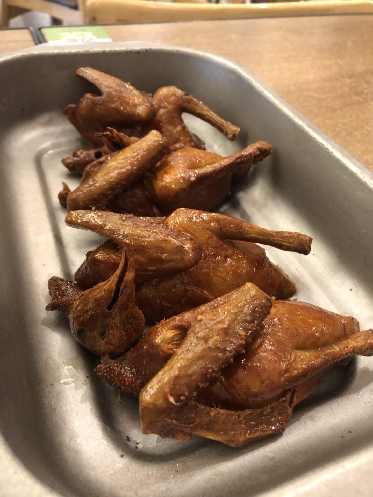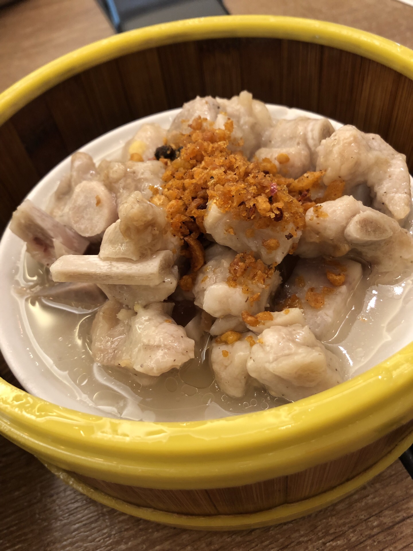 想吃鸽子了,肯定要来189弄的唐宫茶点来吃,他家的唐宫金奖乳鸽那是一绝,鸽子大小适中,味道一级棒,皮香香的,皮肉之间还有汁水,每桌必点必吃。青花椒海鱼,前段时间有活泼88元/份,现蒸的,个头不小。豉汁蒸排骨,排骨入味特嫩,芋艿也好吃。