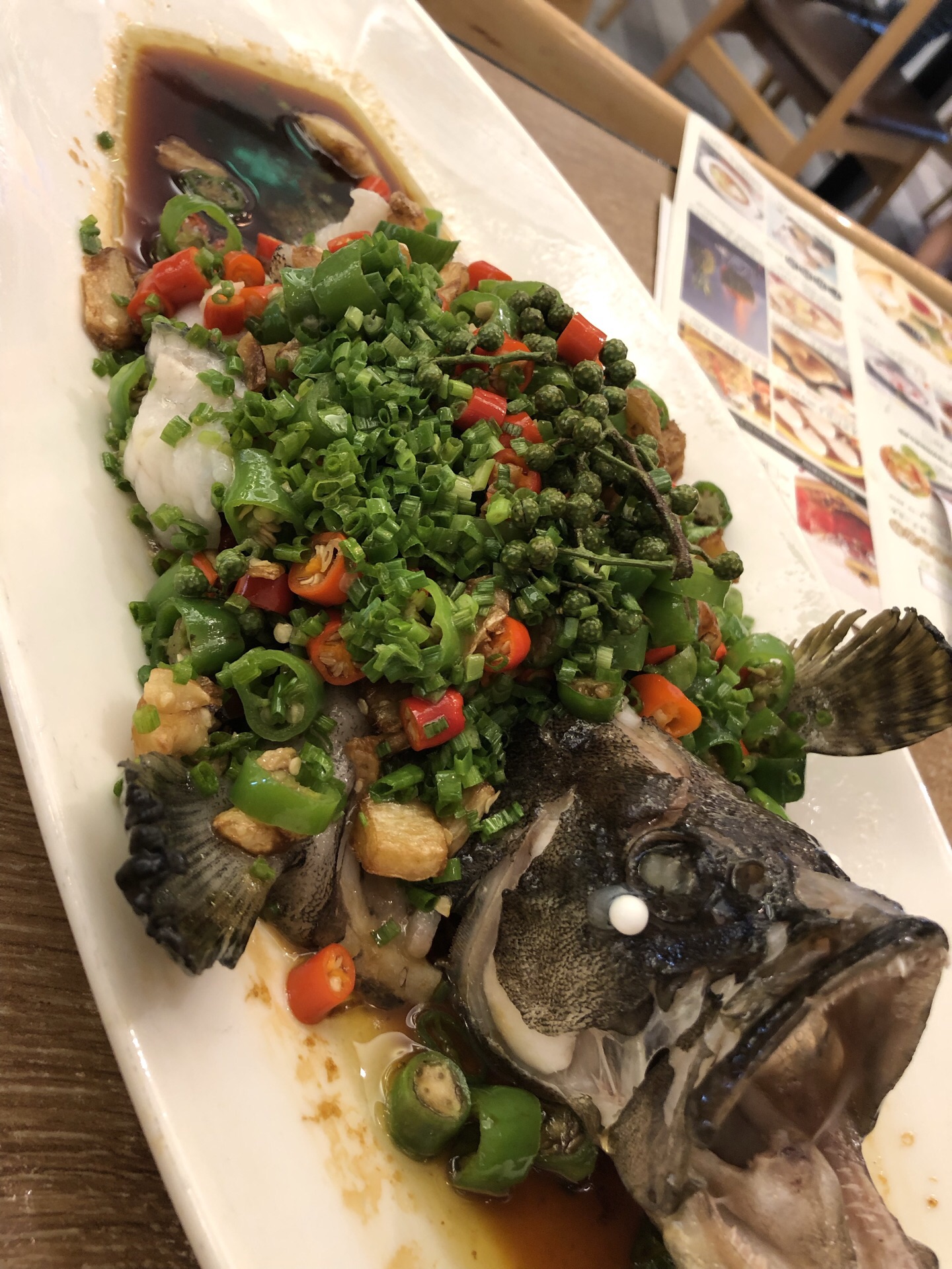 豉汁蒸排骨,排骨入味特嫩,芋艿也好吃。青花椒海鱼,前段时间有活泼88元/份,现蒸的,个头不小