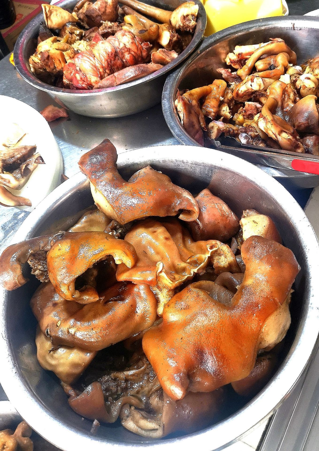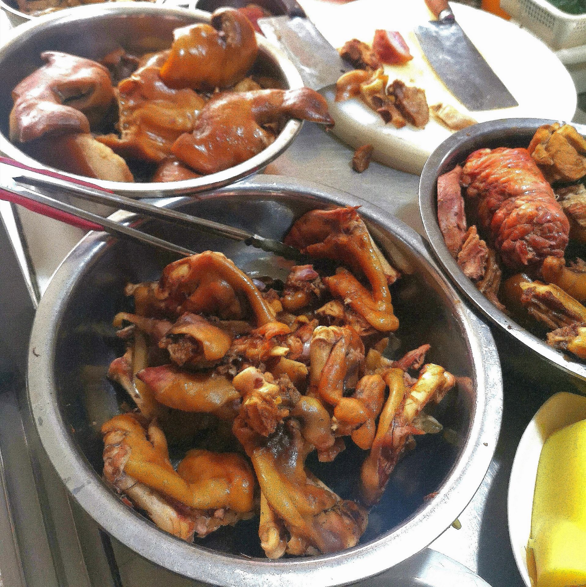 #寻找云南最好吃的100家老牌餐厅# 、#舌尖上的云南# ——《美食指南》写作小组探店楚雄 风味卤品小吃 在楚雄的小吃行业里,风味卤品小吃却名气甚大,楚雄人都知道他们家的卤肉好吃,追随美女杨自英(图九)吃了17年,从双建路的9平方小店,吃到青龙路1000平方米、36张桌子、环境优雅的总店,再吃到雄宝路5层楼600平方米的新店,创始人杨自英硬是把一家小卤菜店开成了2个中档休闲餐厅,让客人可以在更加舒适的环境里,品尝他们家的美食; 卤耳朵、猪拱嘴、卤猪舌,是他家的三大主打精品,其次是卤尾巴、卤猪脚、卤豆腐、卤鸡脚等也是畅销品;这些可以堂食、也可以外卖。 在他们家的酒楼里,还可以吃到很多的地方风味,烤肉、秘制香肠、大海咸鱼配米汤、蒸菜、炒菜等,丰富多彩。 推荐菜:卤耳朵、猪拱嘴、卤猪舌