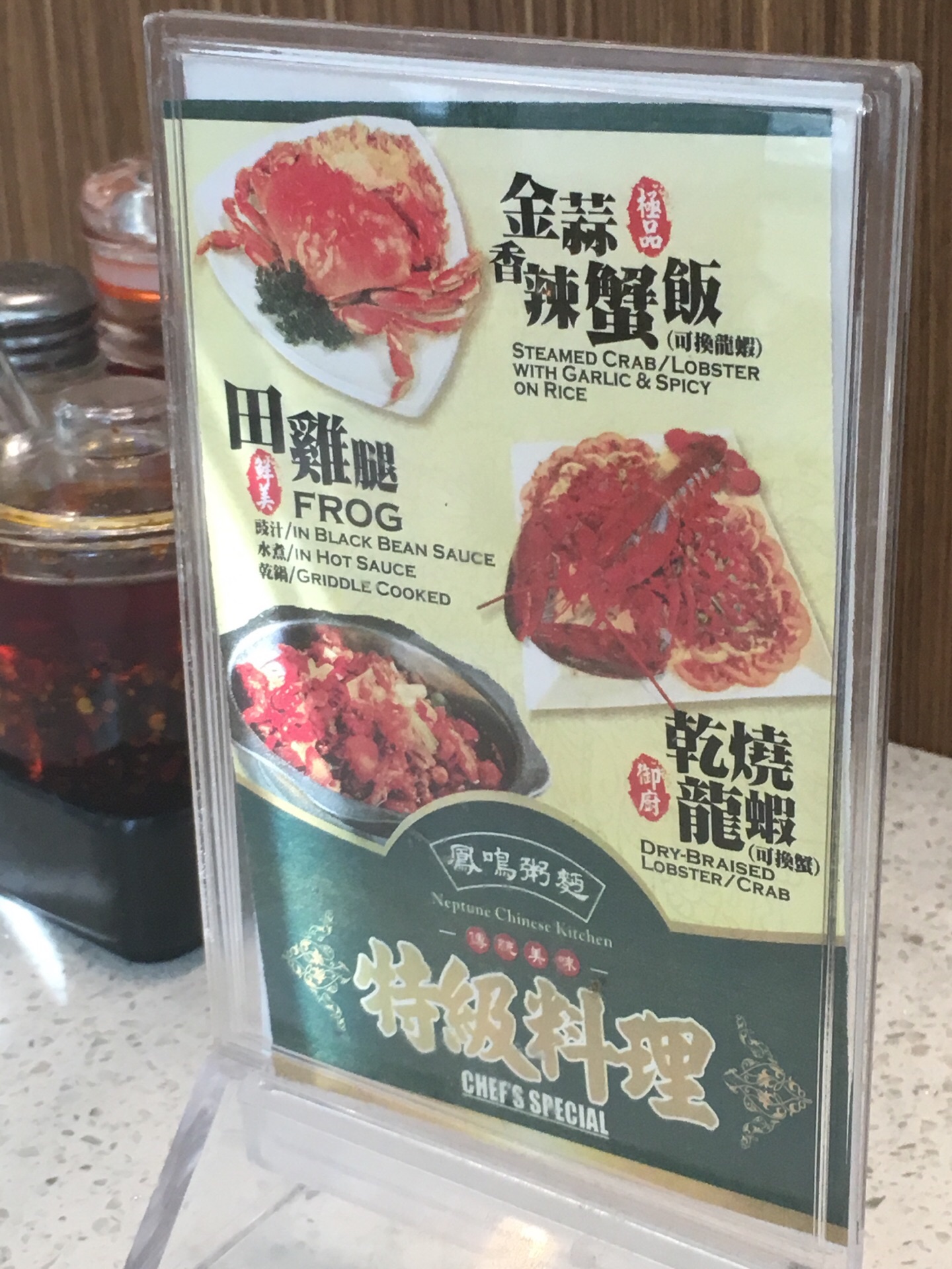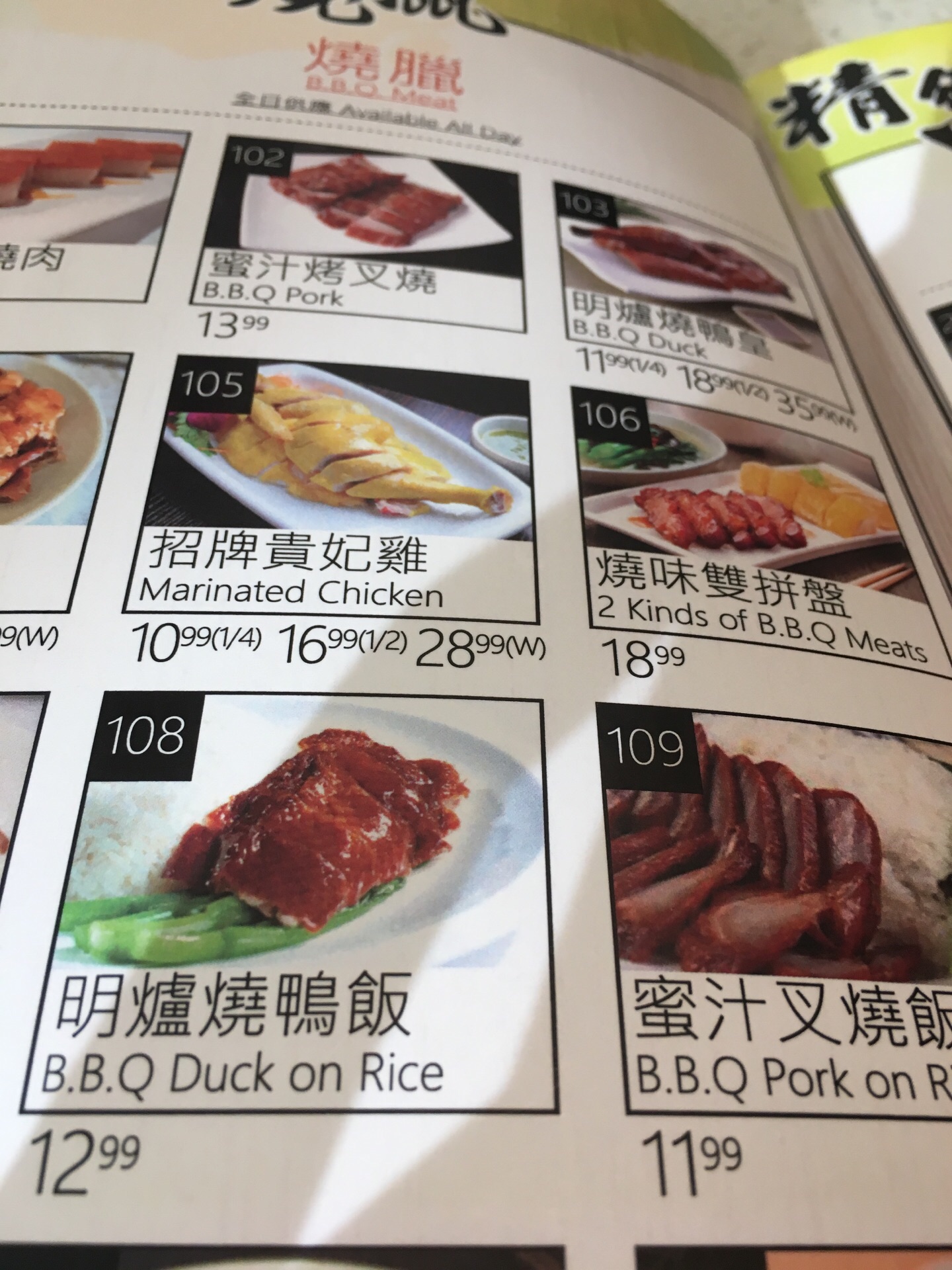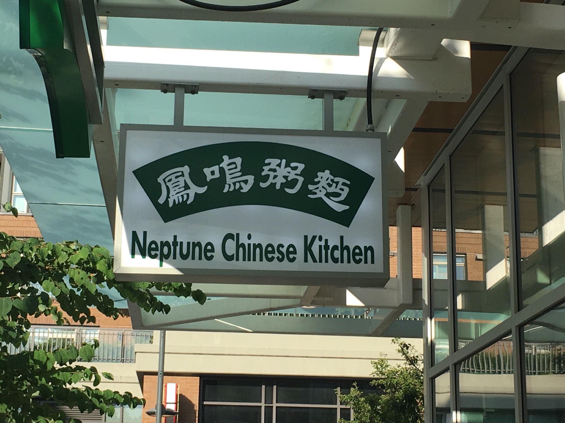 Neptune Chinese Kitchen在UBC的Wesbrook Village中。翻开菜单就是烧腊。烧味双式拼盘18.99刀,烧鸭饭12.99刀,送例汤。葱油蘸料调得很好。免费Wi-Fi。如果打包,每个盒子收费30分(很多洋餐馆都不收费)。味道不错,但比起去烧腊店购买,贵了很多。
