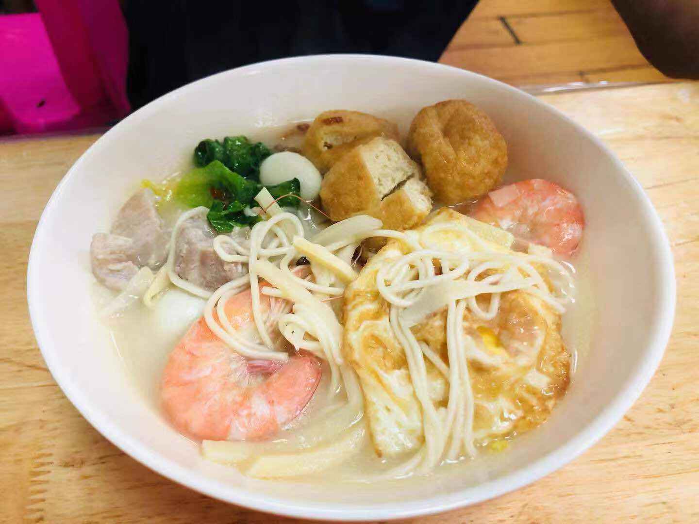 厦门第一家的酸笋面,也是老板发明的酸笋面。小店面就隐藏在中山路小巷子里,只有个小招牌。一大碗面条标配就是20块钱。食料满满一整柜,荤的素的冻的都有。选上三四样料,闽南人爱吃的内脏,大肠,小肠,肉筋条,剔骨肉,加入手工粗面。煮完汤底酸爽,食材新鲜,口感非常好。