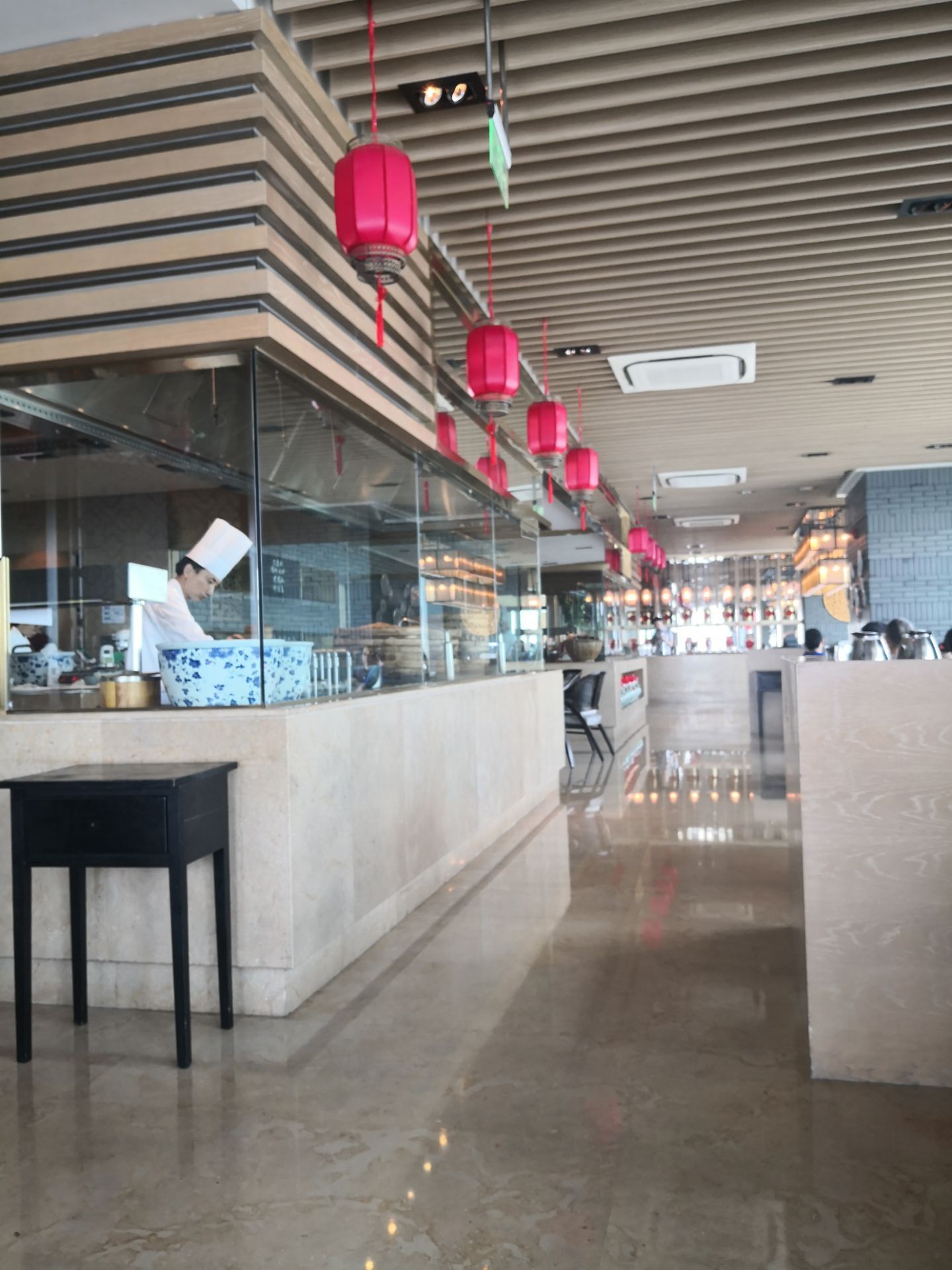 餐厅在凯悦64楼,包厢在65楼,面积不大,餐位不多,周末吃饭需提早预订,不然可能要等位餐厅在凯悦64楼,包厢在65楼,面积不大,餐位不多,周末吃饭需提早预订,不然可能要等位。菜的味道还行,份量不大,餐厅观景还行,性价比么一般般,有会员卡和抵用券消费感觉还行。