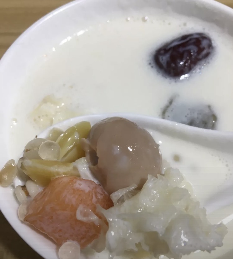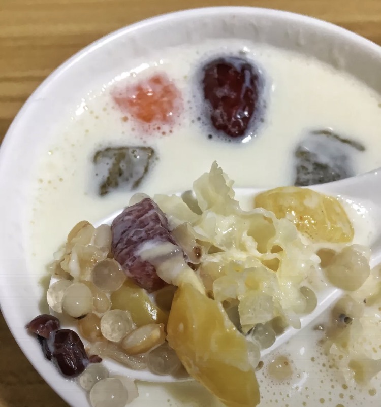 网友2019-08-17加上各种辅料,比如雪耳,莲子,红枣,等等,口感太棒了,营养也很丰富,还有再配上一个油饼,就肚子饱饱了吃得太爽了,满满的一碗牛羊奶,加上各种辅料,比如雪耳,莲子,红枣,等等,口感太棒了,营养也很丰富,还有再配上一个油饼,就肚子饱饱了!