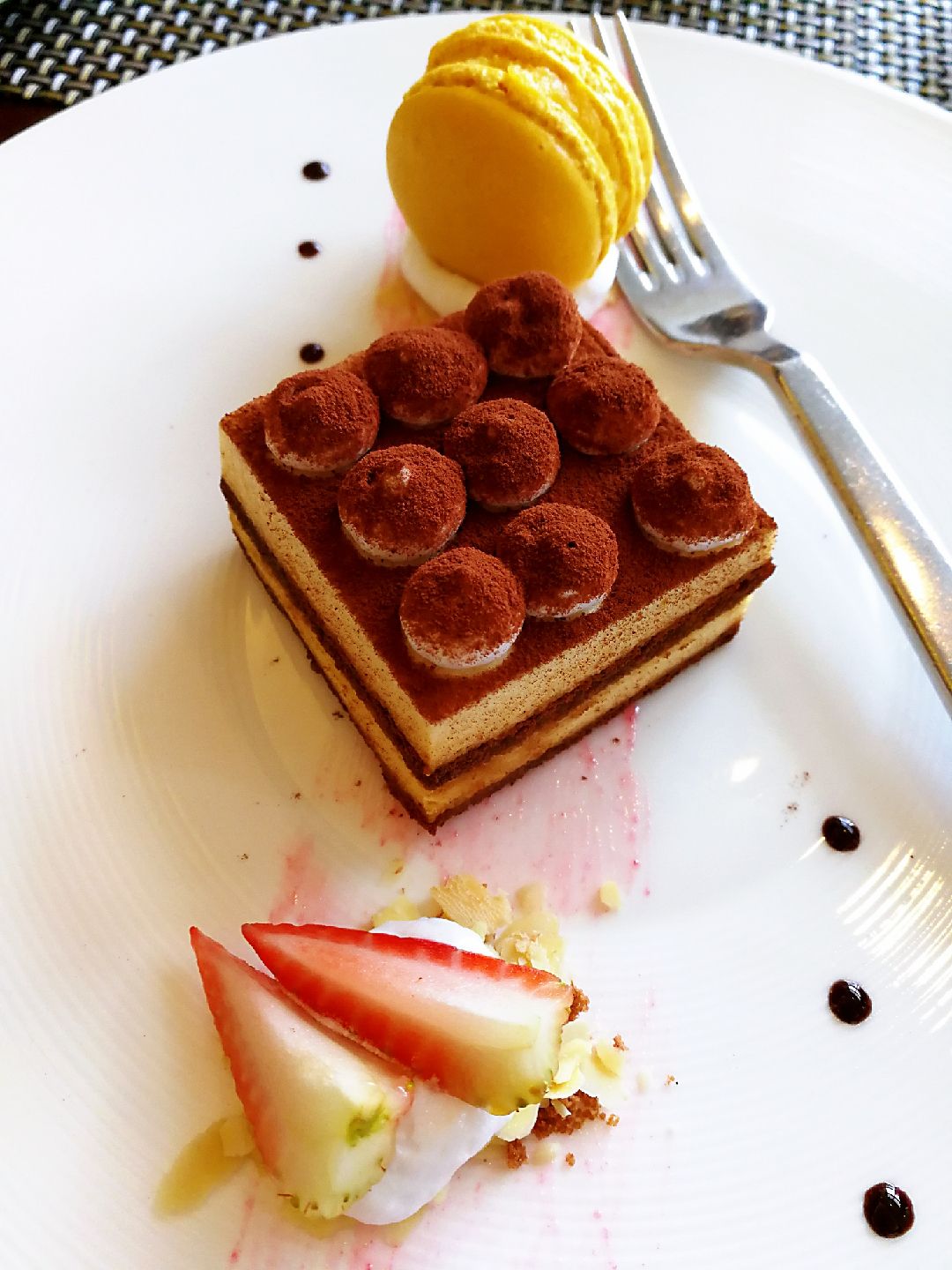 中午和客户在奥膳房餐厅(体育东路店)谈点事情。 这家餐厅位于体育东路的方圆奥克伍德豪景16楼,一出电梯,就看到餐厅。 该餐厅很宽敞,环境装修的比较大气。可以点套餐或者散点。于是各要了一个套餐。 头盘 香芒、蘑菇、芦荟卷 摆盘很漂亮, 芦荟卷成花蕊状,香芒粒、蘑菇粒镶在其中,再淋上沙律酱。这个菜好看又好吃。 汤 蘑菇忌廉汤配了蒜蓉面包 忌廉汤非常浓稠,里面有蘑菇蓉很鲜美,蒜蓉面包沾着忌廉汤吃,别有风味。 主菜 日本汁蘸糖色烤去骨鱼柳 鱼柳是比目鱼,抹了蜂蜜焦糖、撒了芝麻来烤。吃起来味道很香很甜,用来下饭正好。 甜品 提拉米苏 带有浓浓的咖啡酒味,口感是香、滑、甜、腻、柔,有一种与众不同的甜。 饮料 咖啡 咖啡是现磨的,口感还不错。 总体而言奥膳房餐厅(体育东路店)环境幽静,出品中规中矩,价格也适中,美中不足是服务有待改善。服务员虽然彬彬有礼,但是训练不足,面对顾客有点不知所措。像我喝完汤,他把我的汤碗和餐具都收走了,没有主动的给我重新上餐具。