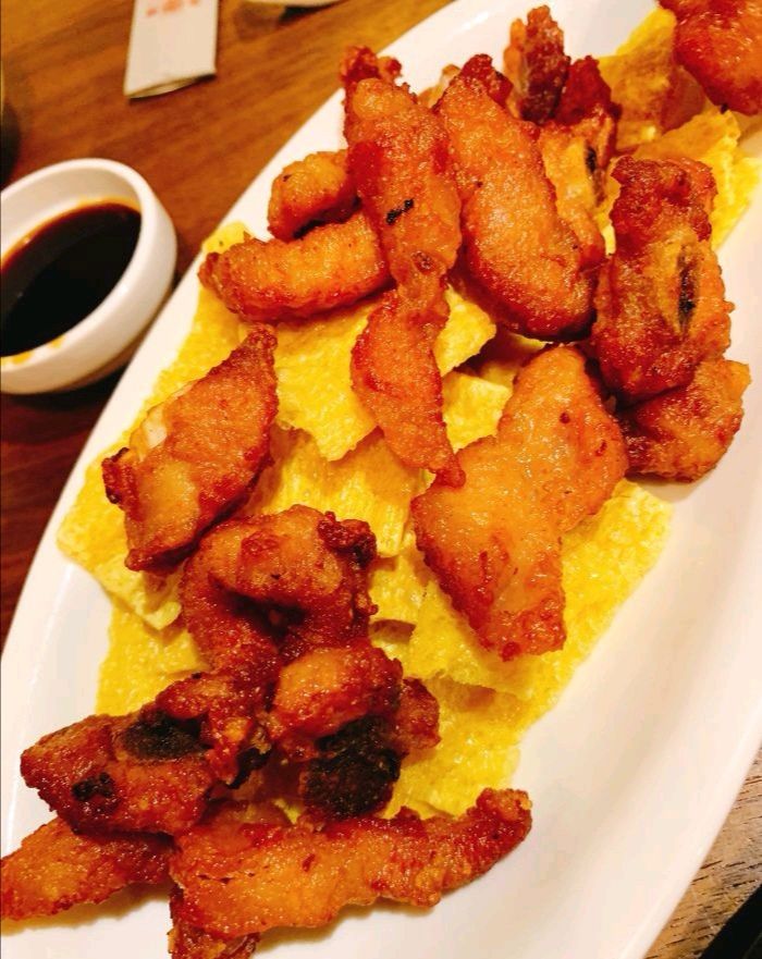 小吃拼盘色可以自己选择搭配。自己搭配的是灯盏糕(尺寸比外面转买的要小一点,所以没有蛋黄,有肉,萝卜丝),煎饺(觉得味道很不错,非常推荐),咸味和甜味飞饼(一般,和外面没什么区别),猪油糕(吃一块尝尝可以,多吃会腻) 鱼皮愉快]个人还是比较满意,就是有几个里面会咬不动。 酥排骨[微笑]也还行吧,可以点来尝试下。因有小孩,其他菜就随便点了几个吃吃,整体口感中等偏上一点吧