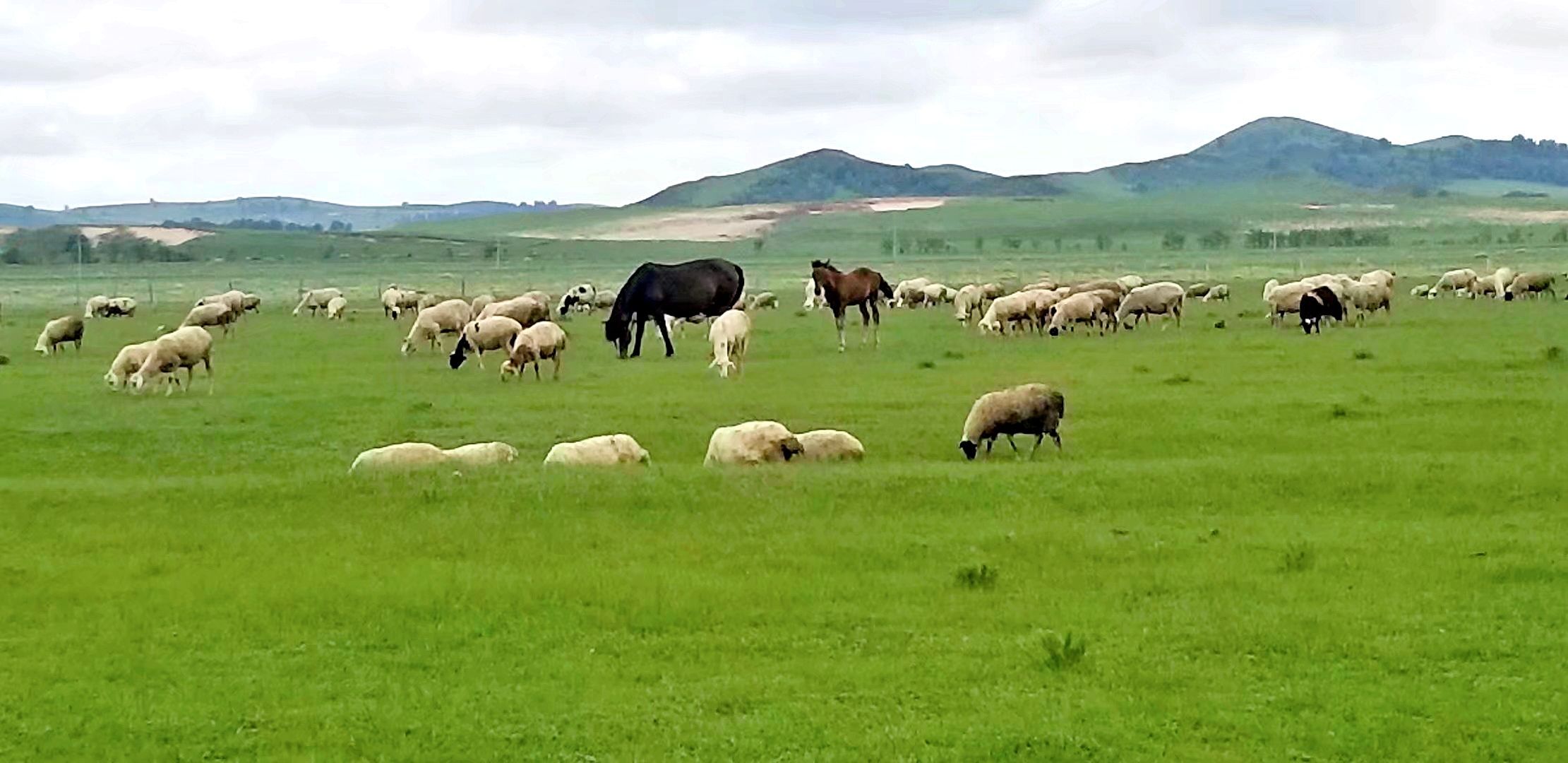网友2019-08-18这是怎样一幅自然和谐的画面? 我们人类不断追求心灵的自由,来到这个地方,放飞心灵的自由蓝天白云下,青青的草地上白色的小羊羔在妈妈身边依偎着。还没有长大的小马驹跟着妈妈在草原吃草。 这是怎样一幅自然和谐的画面? 我们人类不断追求心灵的自由,来到这个地方,放飞心灵的自由。
