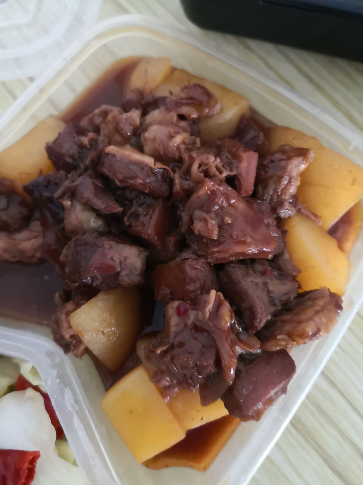 牛肉土豆做的也不错。小平鱼炸的非常透,只有里面的主刺不能吃,其他的基本都炸酥了。总的来说,满意虽然是点的外卖,不过菜做的还是很不错的,一点不含糊。小平鱼炸的非常透,只有里面的主刺不能吃,其他的基本都炸酥了。牛肉土豆做的也不错。总的来说,满意。