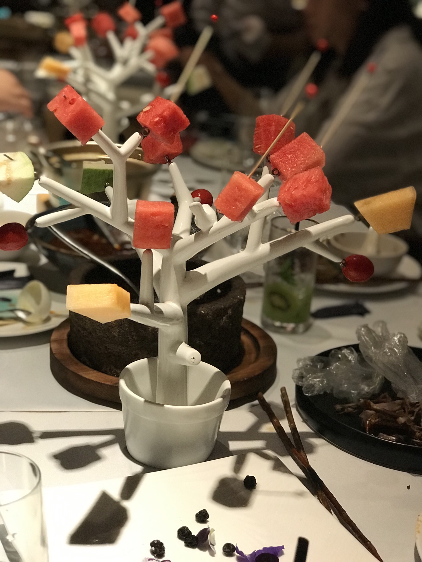 部门同事聚餐,一致通过决定去颜值与美味并存的宴遇,这次来到的是位于万象城三层的分店。 作为厦门老牌网红创意餐厅,环境自是不在话下,精心布置,风格自成一派,满眼的高级感。吃饭也要有仪式感,很喜欢他家的餐具,简单又不失精致。一到饭点,座无虚席,还得排队,想吃请赶早。 「鸽子·蛋」鸽子蛋外壳由白巧克力制成,内馅夹有芒果鲜汁,造型逼真自然。吃饭也可以很有趣,用小匙轻敲蛋壳,即可享受美味的鸽子蛋。烤乳鸽外皮酥脆,肉质细嫩。 「鹅肝虾仁粒炒饭」米饭粒粒分明且Q弹,配上鹅肝粒和虾仁粒,清新脱俗的炒饭。 「海鲜毛血旺」在传统毛血旺的基础上,加入鲜虾、鱿鱼、花蛤等海鲜元素,层次更丰富了,口感也提升了一个档次。