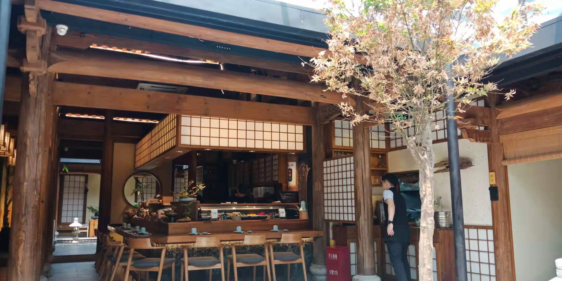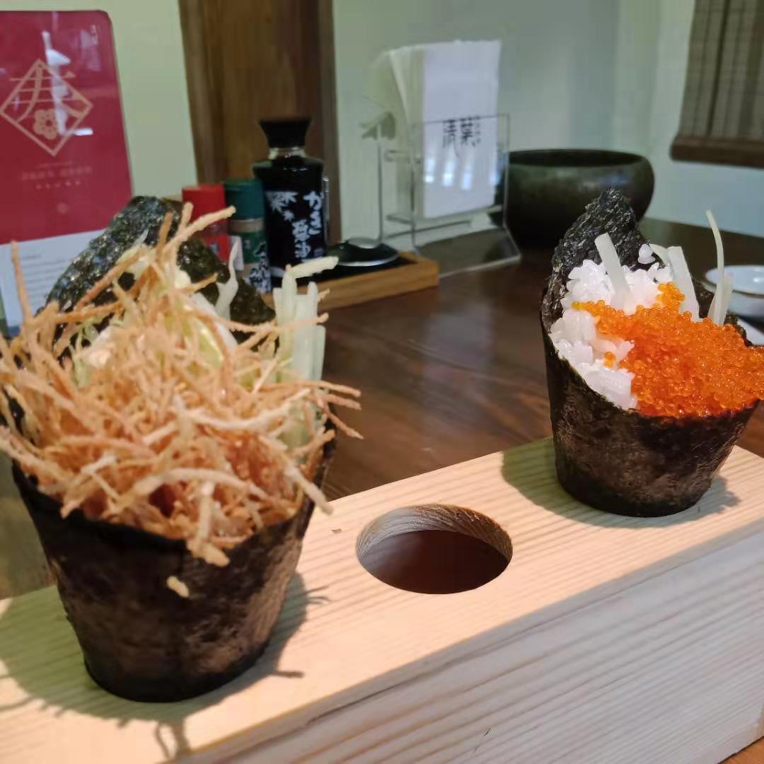 ✨✨校花酱带你去探店 清叶割烹料理 晋江市五店市景区内,导航可到,车辆可以停到附近的万达停车场。 [环境]晋江五店市的闽南古厝群,走进去很有小时候的味道,里面是日系装饰。服务员也穿着着和服,庭院很雅致,流水,清池,很有异域风情。他们家有包间,放下小帘子就是自己的世界。也有吧台,可以看到厨师制作着料理。 [服务]每个服务员负责着一间小包间,态度很好,桌上有个小铃,轻轻一按,服务员就过来了。 「牛蒡手卷」「蟹子手卷」手卷很喜欢,米粒很软糯,是专门做寿司的米,蟹子是我的最爱,吃到嘴里咔咔作响。 「烤牛小排」烤熟了的牛小排滋滋作响,一上桌就香味扑鼻,下面有炭火保温,慢慢吃,不着急。 「和风果蔬沙拉」沙拉份量很足,品种很多,果蔬都很新鲜,裹着沙拉很好吃。 「清叶招牌炒饭」炒饭饭粒颗颗分明,味道很均匀,端上来就分好小碗,一碗吃完都不满足。 很满意的一次用餐,在视觉和味觉都得到了很棒的体验。好评。