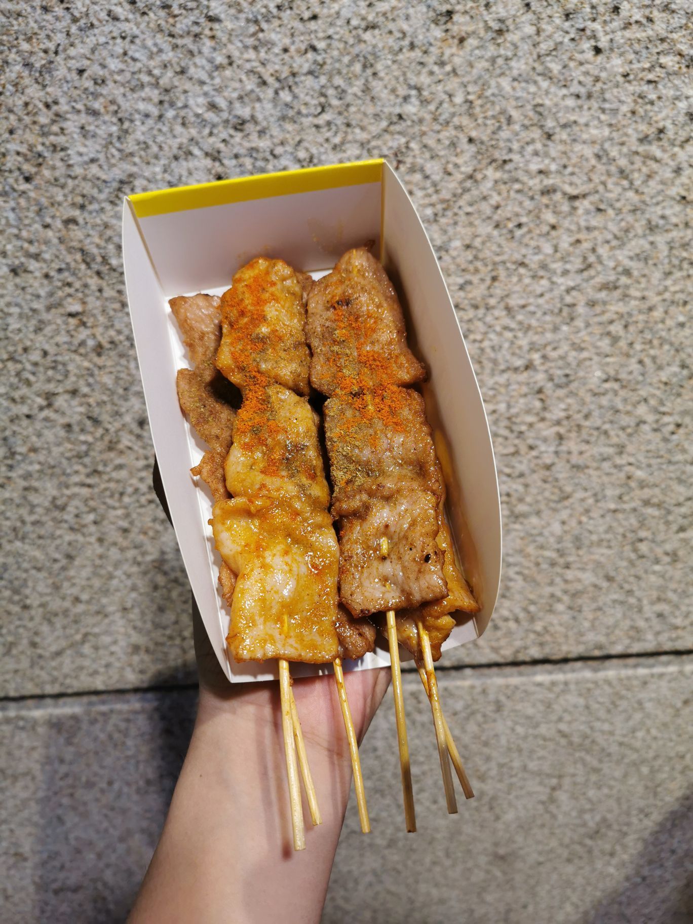 厦门必吃小吃,应该就包括沙茶里脊肉串了! 这一家里脊肉串有两种味道,沙茶和咖喱,一般都是一份4串起买,一种味道两串,吃的才比较过瘾,或者和小伙伴一人一半,感情不散!!哈哈哈!!! 他们家肉串还蛮大一串,一整块肉吃下去很过瘾,会吃辣的可以多放点辣椒,都是鲜炸出来的,口感肉质鲜嫩,趁热吃会比较香~值得推荐~