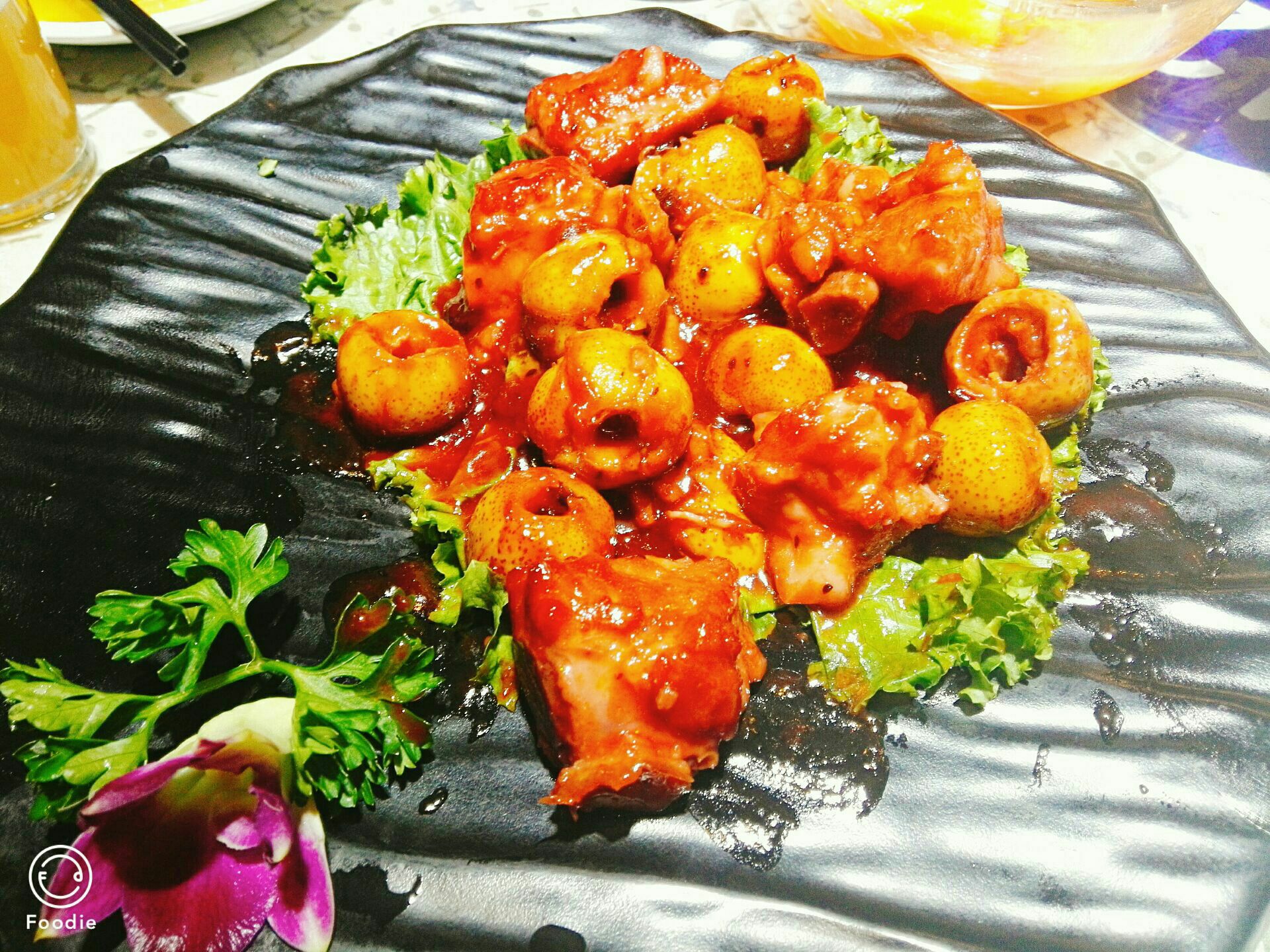 ...肘子,山楂小排,木瓜虾球,扁豆炒藕片,还有一个汤菜忘了叫什么,服务员推荐要了一份武大郎烧饼套餐