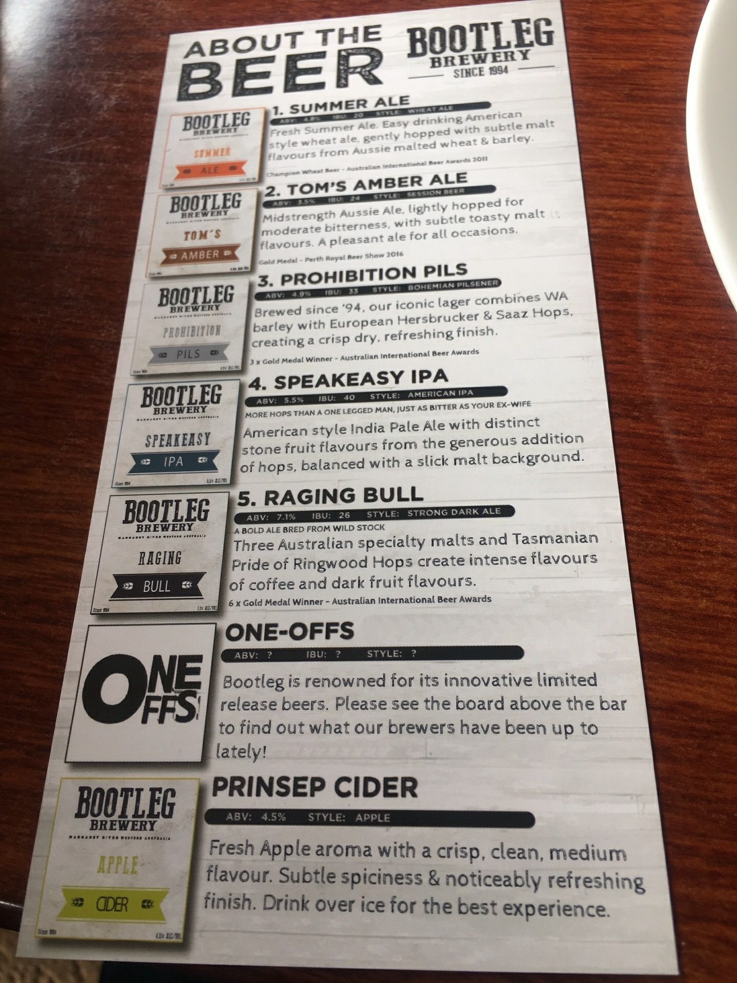 Bootleg是西澳大利亚第一座啤酒厂,距今已经有100多年的历史,这里还采用传统的工艺酿制啤酒,大家可以观看啤酒整个的酿制过程,同时还可以在这里享受西澳美食,品尝原产的啤酒,真的是一种非常不错的就餐享受。
