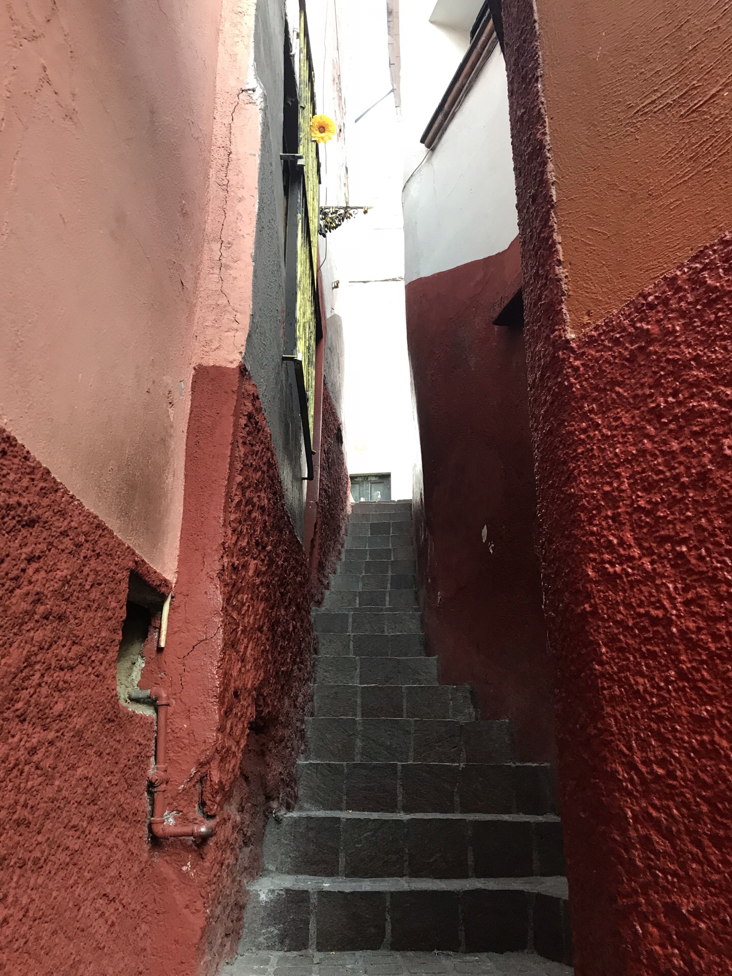 位于瓜纳华托老城区的西北,从圣母教堂走过去大概十分钟左右,本身其实只是一个很窄的小巷子,由于两个楼距离很近,甚至两边的阳台上都能相互接吻,据说当地有一个爱情的传说,不过似乎这里是因为coco而广为人知。