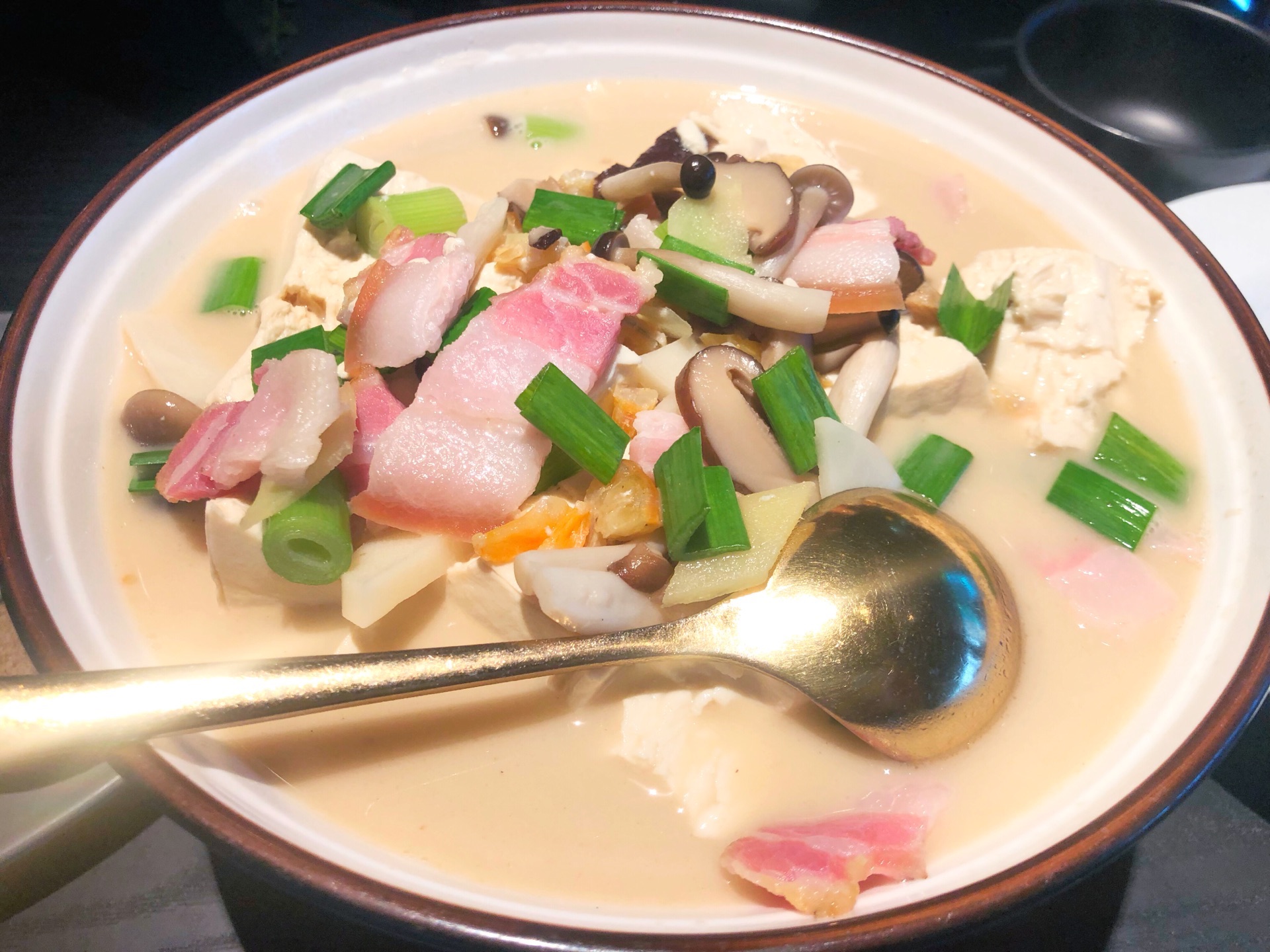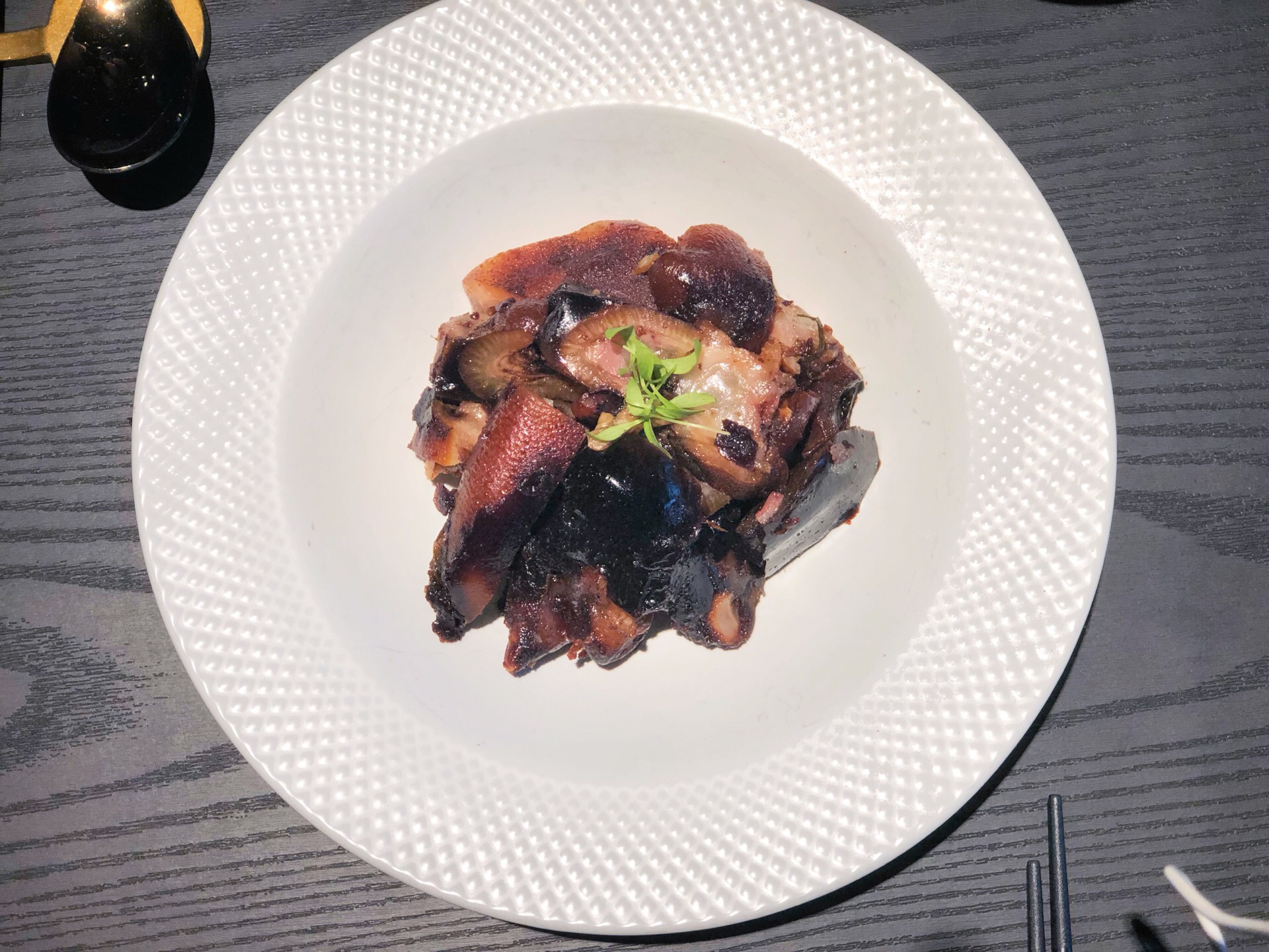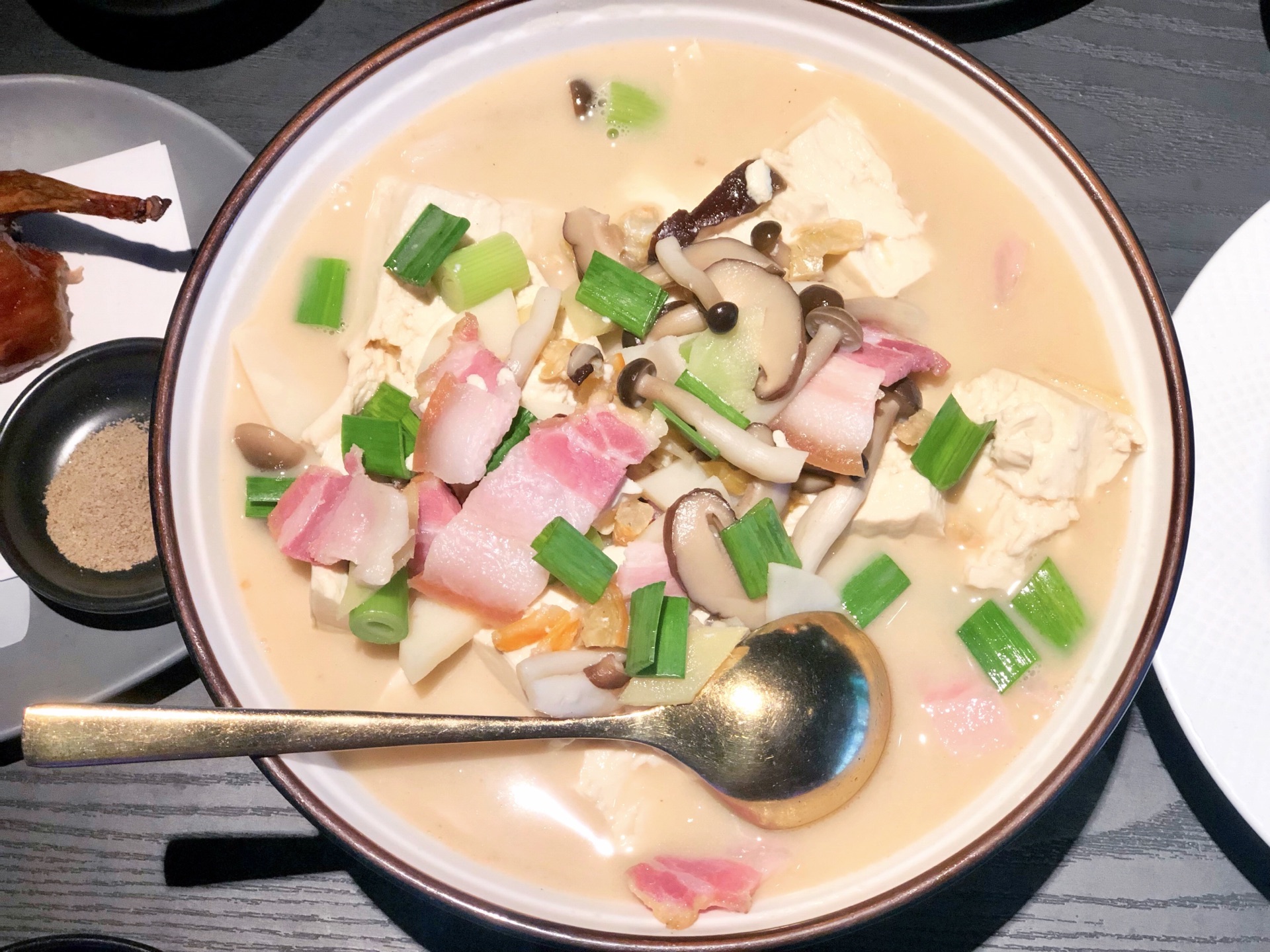 ️渐渐的,我也变成了吃冷淡…… 真心的,现在吃啥不是重点,关键是和谁一起共进午餐。 这家中餐厅主打台州菜系,可惜团购套餐里的都不是什么很招牌的菜。 暗搓搓的环境,倒是蛮适合聊天的,也能掩盖我难看的吃相…… #猪脚冻# 满满胶原蛋白。不是特别咸,挺喜欢吃的。 #脆皮乳鸽# 咩哈哈,这个假期疯狂爱上乳鸽!去哪里都想来只乳鸽!皮很脆,肉有嚼劲,爱了爱了…… #手撕石磨豆腐煲# 讲真不喜欢豆腥味,吃一块足矣。 #梅干菜肉沫蒸黄鱼# 梅干菜的味道没吃出来,黄鱼很新鲜,但不喜欢这样的烹饪。 #猪油渣广东菜心# 这个菜也太咸了吧,广东菜心很juicy导致我吃很多但也很口干!猪油渣第二次吃,有种吃肉肉的感觉……