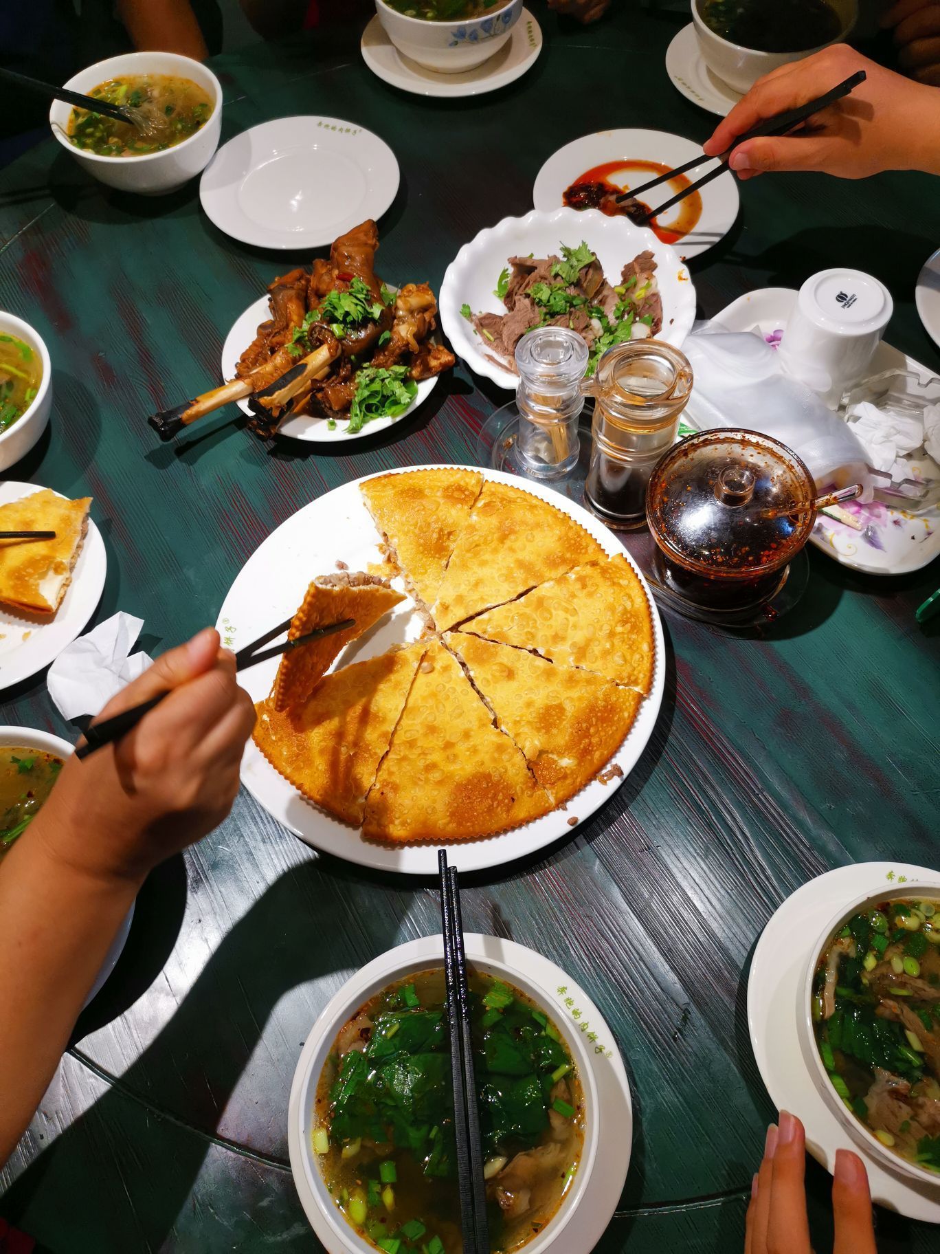肉饼子,牛肉汤,羊蹄子,牛肉都好吃。我们既加饼又加汤,汤里牛肉真多,好吃,真好吃。好吃又实惠。