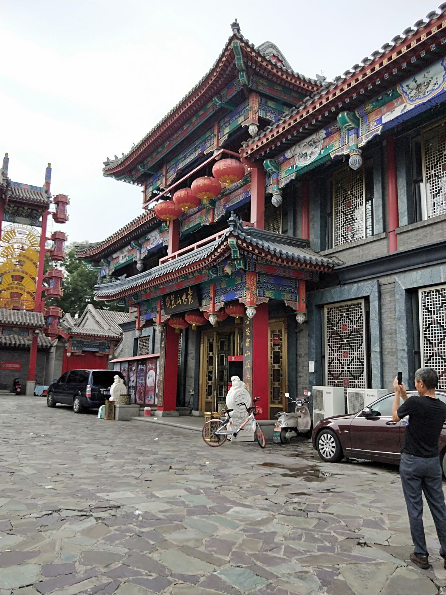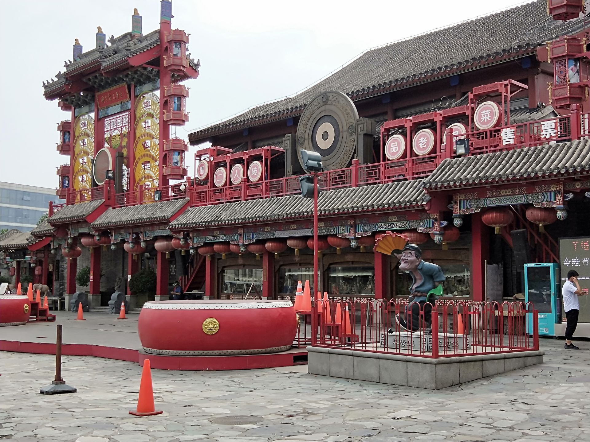 从前门鲜鱼口小吃街一路逛吃,穿街而过想去三里河,谁曾想搞错了方向,无意中发现了北京的刘老根大舞台,广场正前方很高的一个木雕老人想必就是刘老根,剧场前还有两个人物塑像,右边的是赵本山无疑,左边的不知是谁,应该不会是宋丹丹。