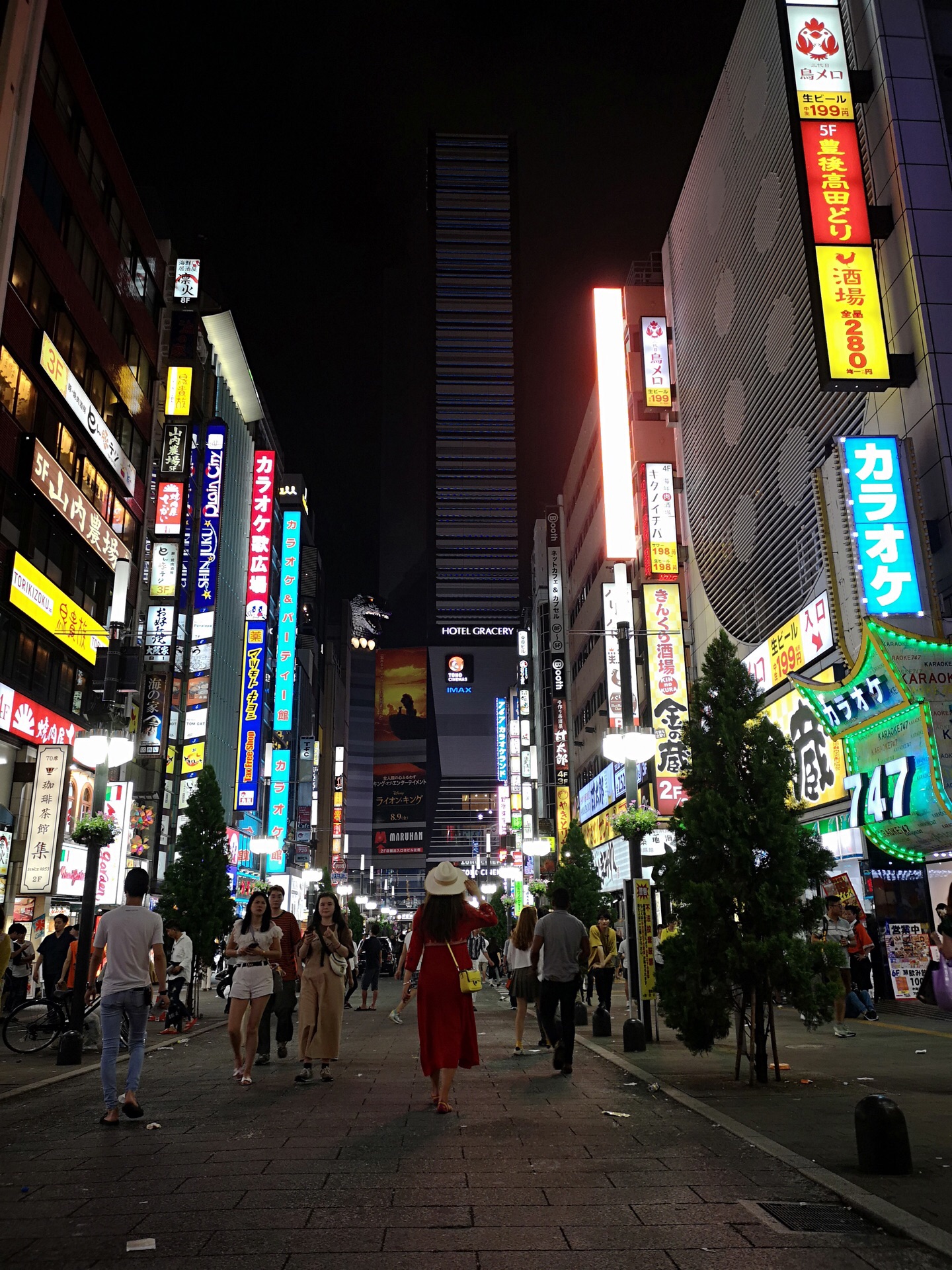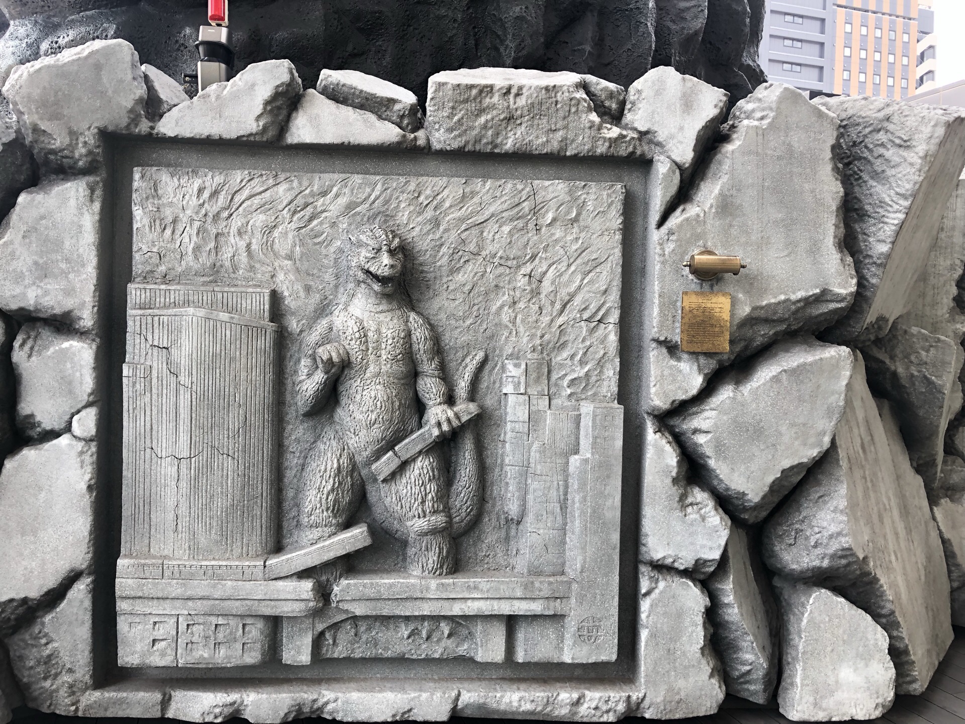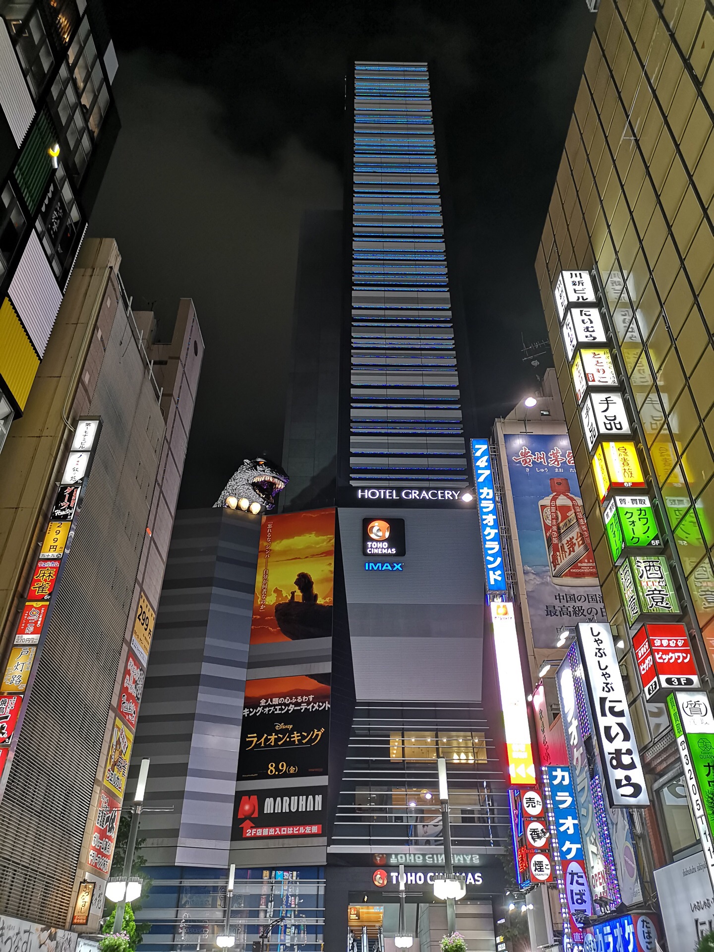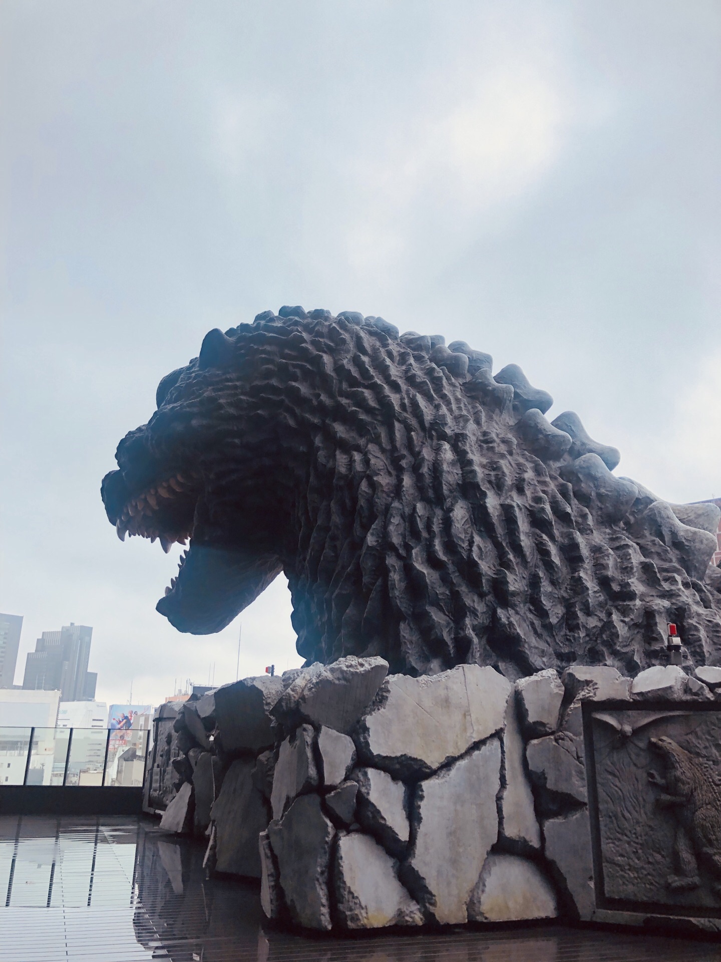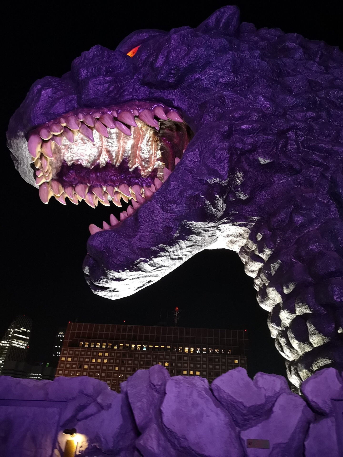 我就是为了近距离接触这个哥斯拉,所以就选择了新宿格拉斯丽酒店,在酒店八楼的平台上,记得好像从中...