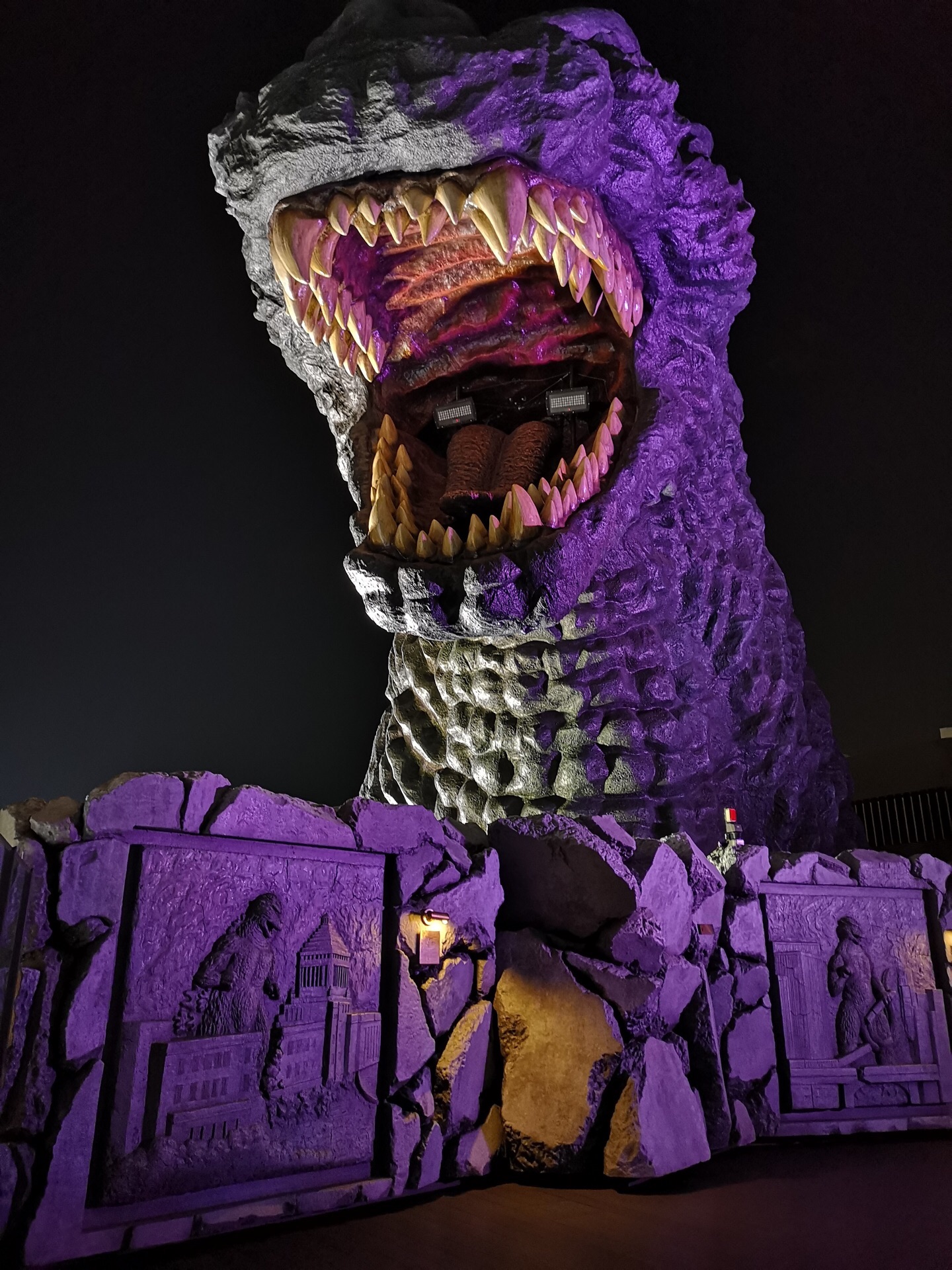 我就是为了近距离接触这个哥斯拉,所以就选择了新宿格拉斯丽酒店,在酒店八楼的平台上,记得好像从中午12点开始,到晚上8点,每个整点都会喷火,发出声音,小朋友可喜欢看呢,这个格拉斯比较显眼,我们出去玩了回酒店,只要朝着这个目标,就不会迷路!