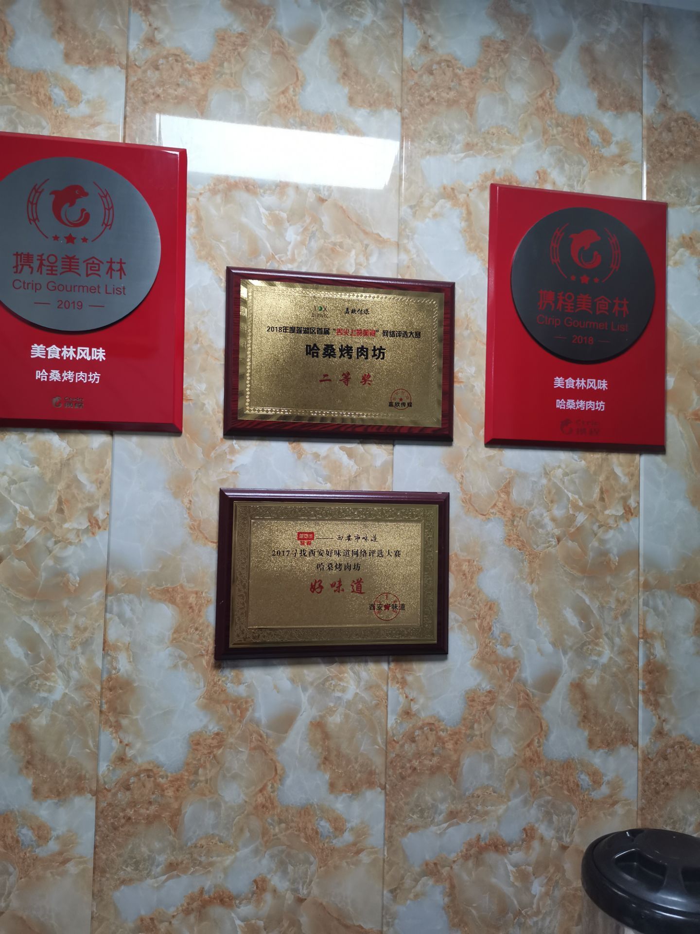 网友2019-08-22今天光临了美食林推荐的哈桑烤肉坊,就在西安洒金桥美食街中部,我要了鸡翅和牛肉,鸡翅外焦里嫩,牛...今天光临了美食林推荐的哈桑烤肉坊,就在西安洒金桥美食街中部,我要了鸡翅和牛肉,鸡翅外焦里嫩,牛肉焦香焦香焦香的,非常好吃。