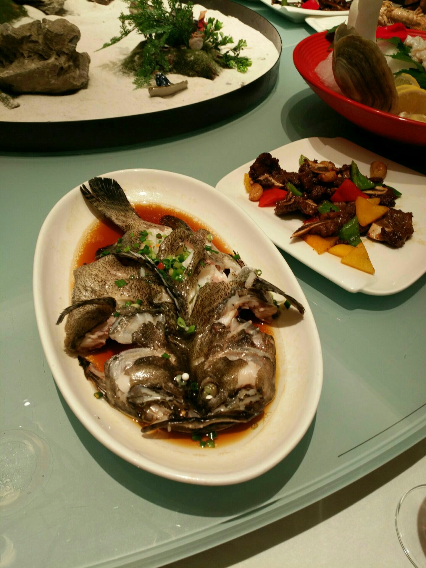...挺好的,其中一道开胃菜,味道非常好,我们还特地研究了一下,感觉是某种菜心,很好吃,很脆,很爽口
