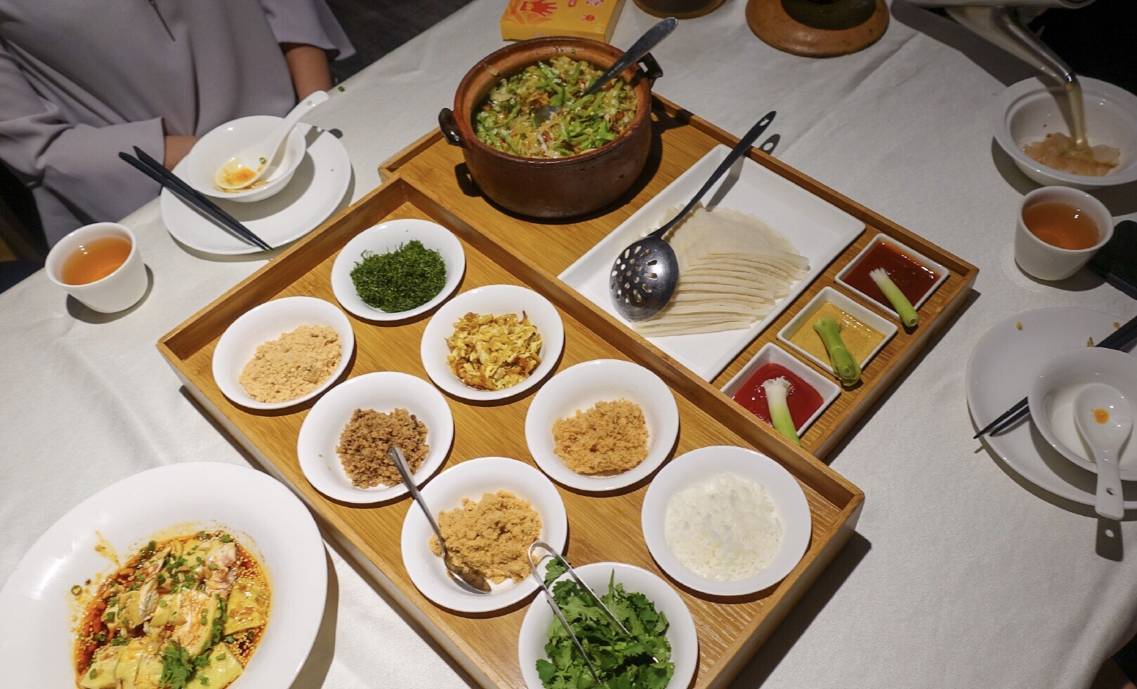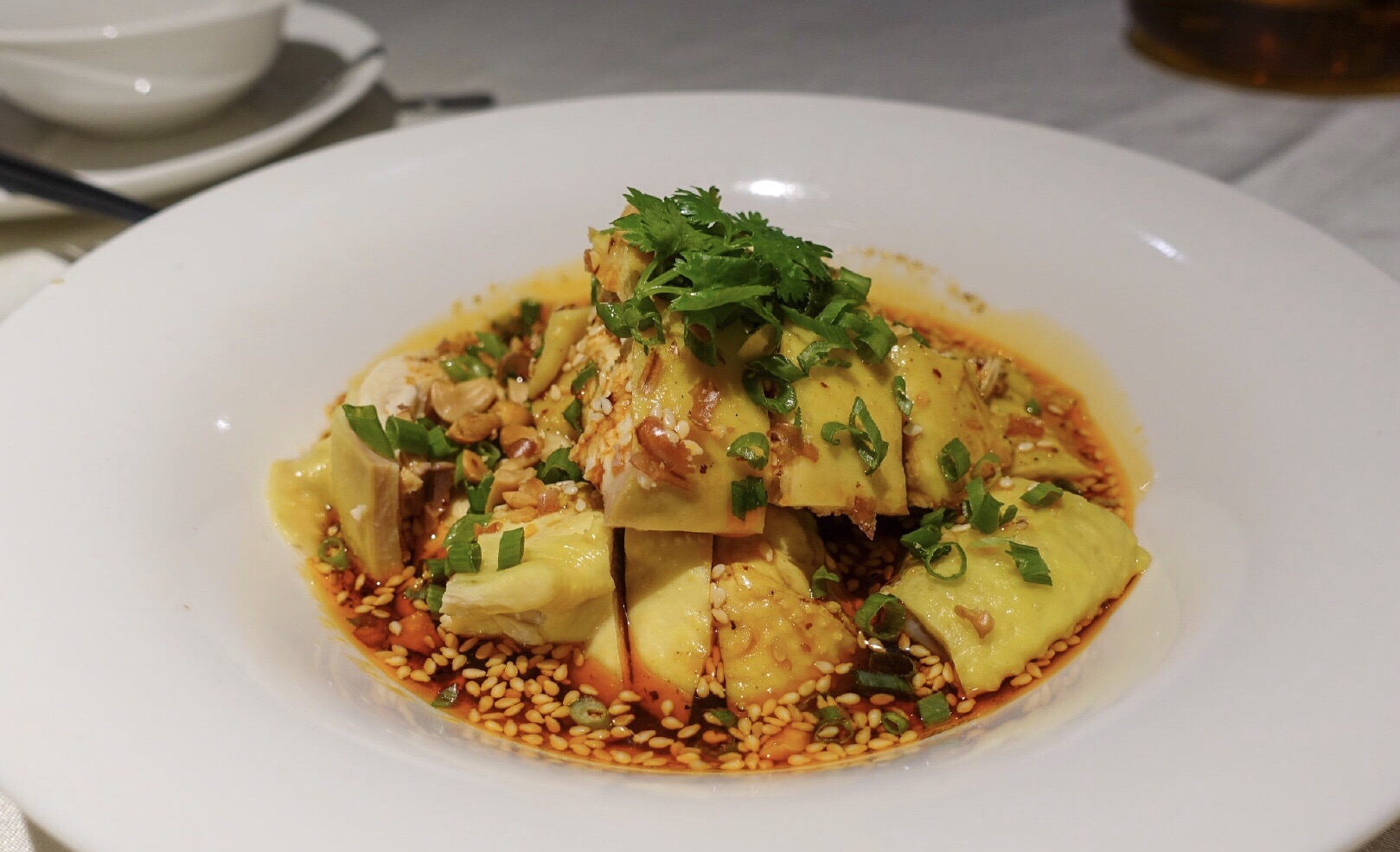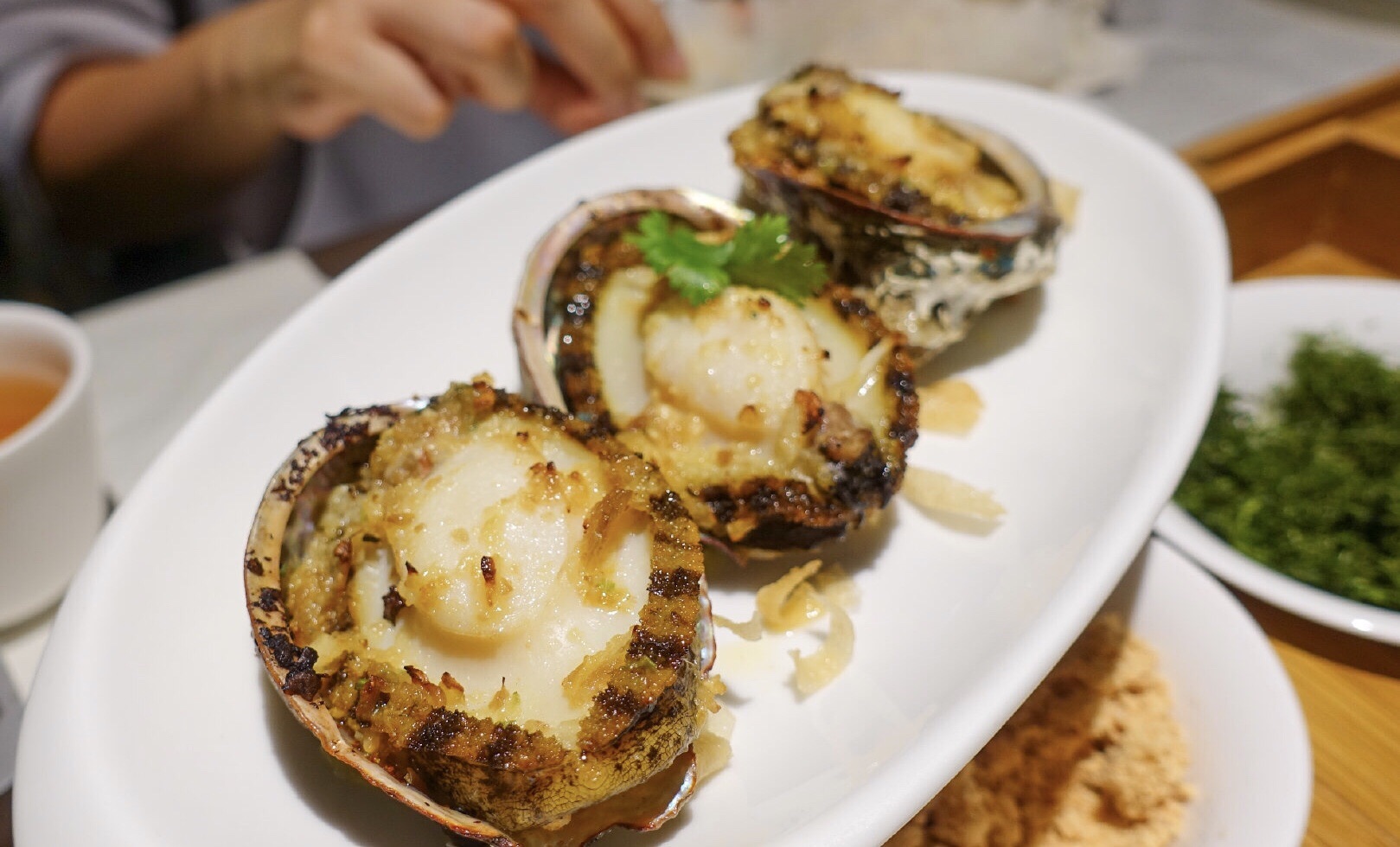 黑明餐厅,室内装修感觉在湾仔的私房菜吃闽菜。厦门薄饼的摆盘充分显示出了一阵操作猛如虎、事后洗碗洗到哭的本质,三种酱料(还有芥末!)加上用大葱点酱想法好评,但是缺点也有点明显:馅料虽然基本齐全,但是偏素不够香,薄饼皮也比较单薄,好在香菜海苔炸米粉管够撑起口感一片天。 春卷之外两道贝类也很好吃。鸡汤汆海蚌肉质和火候都很好,入口脆甜,舌尖带我去漳港!可惜鸡汤和海蚌相比逊色一些。另外黄油煎鲍鱼是真的又香又嫩,黄油煎香的香气仿佛打开鲍鱼的新世界,值得高分。土笋冻沙虫味浓,也在中上水准。 除了闽菜之外其他的菜式点的一般:红酒鹅肝火候差一点,里面不够香;酸汤煮雪花鱼,连颜色都交不足货更遑论味道了。