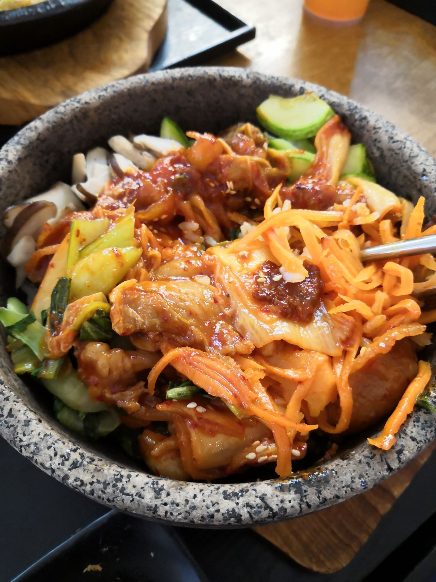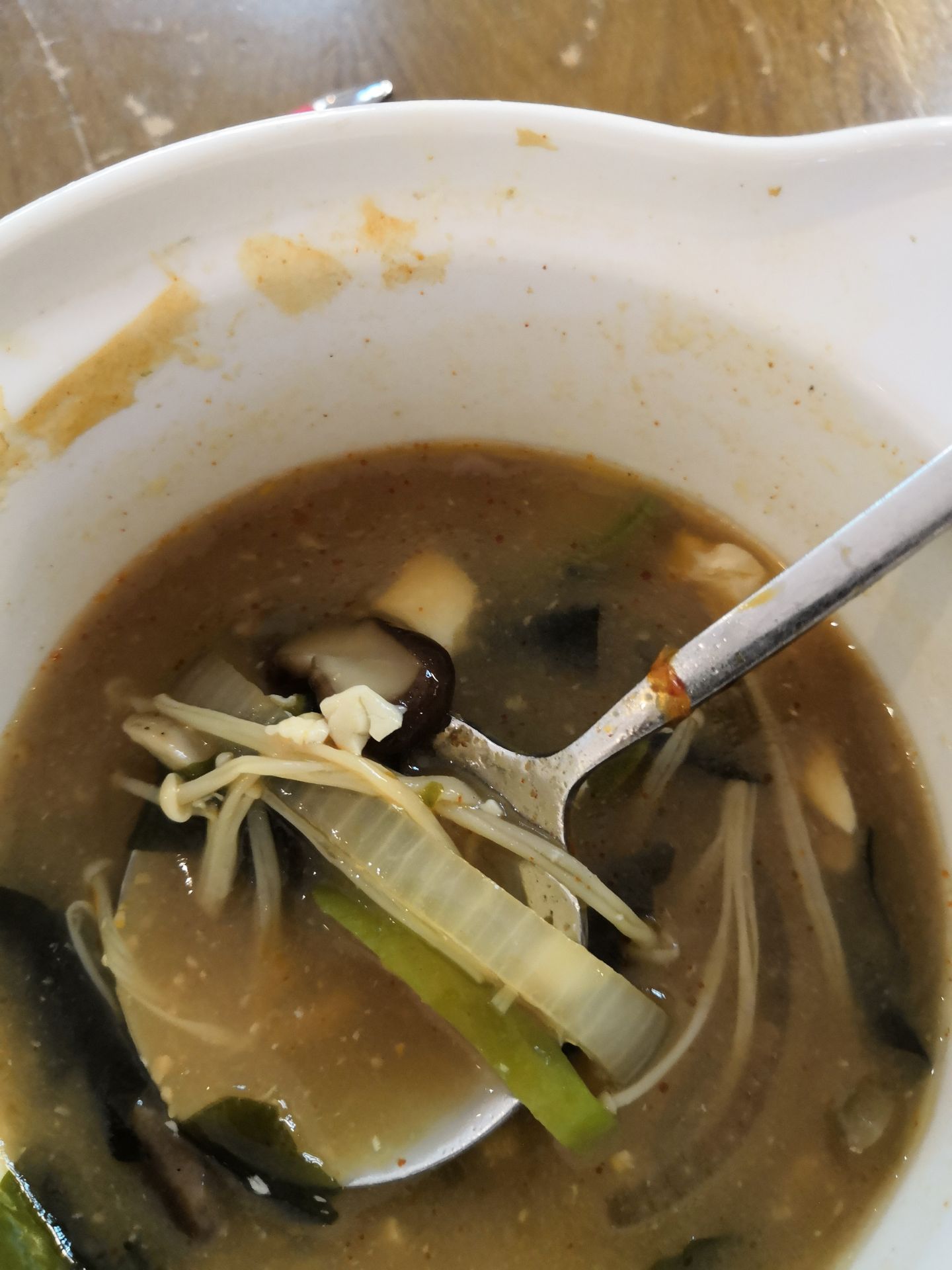 匆忙中来到了午餐时间,遇到这家店,看到吃饭的人还挺多的就试试看把。点了拌饭,这个应该是他们家特色吧,五花肉的那种,对于我这个怕油腻的人来讲,略微有点没办法不浪费了……汤里面的内容挺多的,肉松寿司卷一口下去还是很满足,上餐挺快,适合出差。