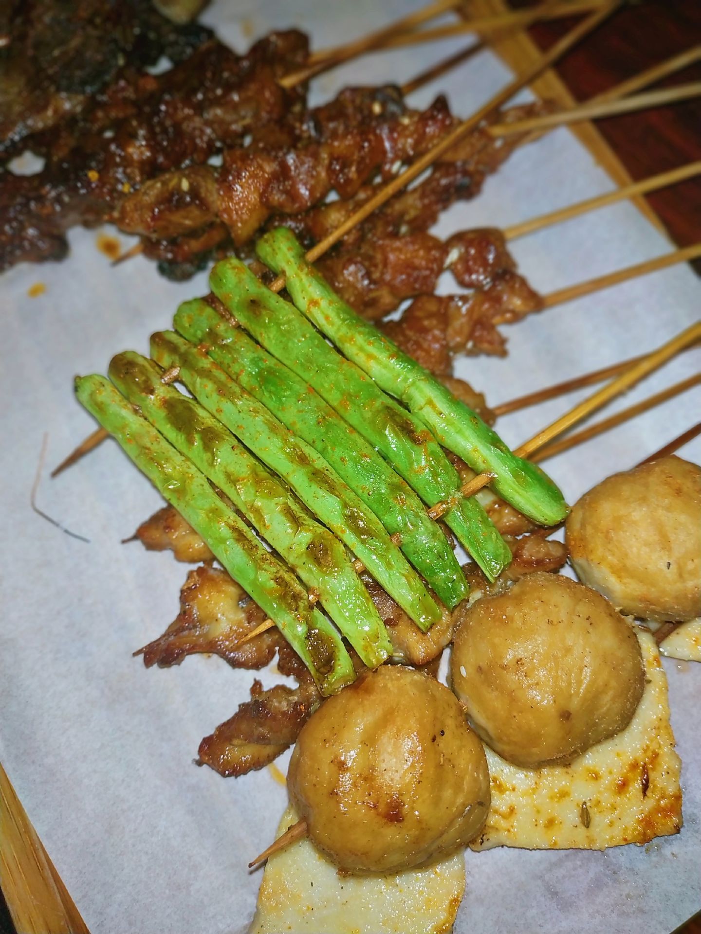 #二龙撸串 撸串是夏日的灵魂,夏季走一遭,没撸过串,那就不算真正过过夏天! 早前就听说过集美的这家二龙撸串了!位于集美龙舟池与嘉庚体育馆之间!这是家人气十分旺的烧烤店,与朋友到达时,才不到7点,店里已经坐满了人!门口还有不少等位的,看来确实相当受欢迎。 店里是熙熙攘攘的人们,迎着好闻的烟火气我们做了下来!酸梅汤来上一扎,清凉又解渴!随着厨房发出烤肉的香气,烧烤瞬间就上了桌,我与朋友都惊叹这速度也太快了吧! 烤牛肉吃上一口,恐怕是我吃过最好吃的烤牛肉串了,肉质细嫩又入味,散发着好闻的香气! 接着烤肥肠,肥嫩不腻口,Q弹又有嚼劲!加上香香的调味料儿,更是惹人食欲! 还有必须好好夸的炼乳馒头,简单的小馒头轻松炙烤加上炼乳后后居然香甜感也是10倍!一份完全可以吃的很过瘾。 烤牛肉串,羊肉串,鸡软骨,牛舌,贡丸,千页豆腐,生蚝,豆干,金针菇,四季豆,秋葵,即使只点一份商家也接单的,这样的规矩真的是非常人性化了!不过倒是麻烦了烧烤师傅。