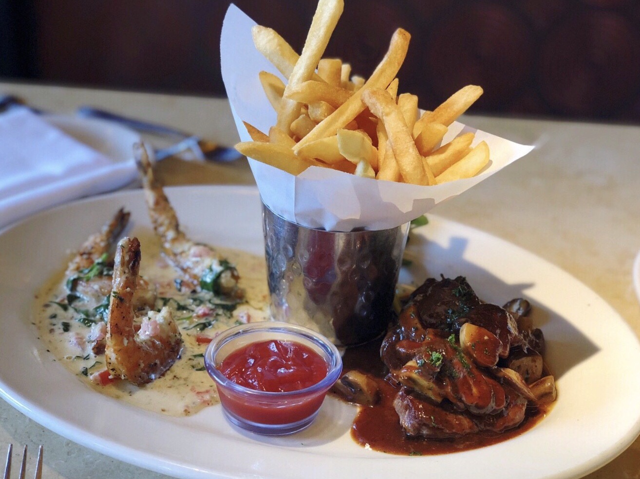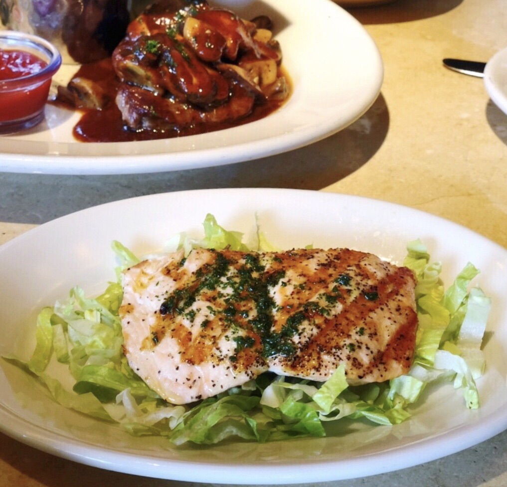 餐厅标准非常高 菜的分量都很大 品质也算可以 三文鱼肉煎的有一点老但可以接受 海陆大餐里牛排比较好吃 还点了牛油果吐司 真的超级大一份 两个人都没吃完 招牌芝士蛋糕很浓郁 略略甜 偶尔一吃觉得还不错~