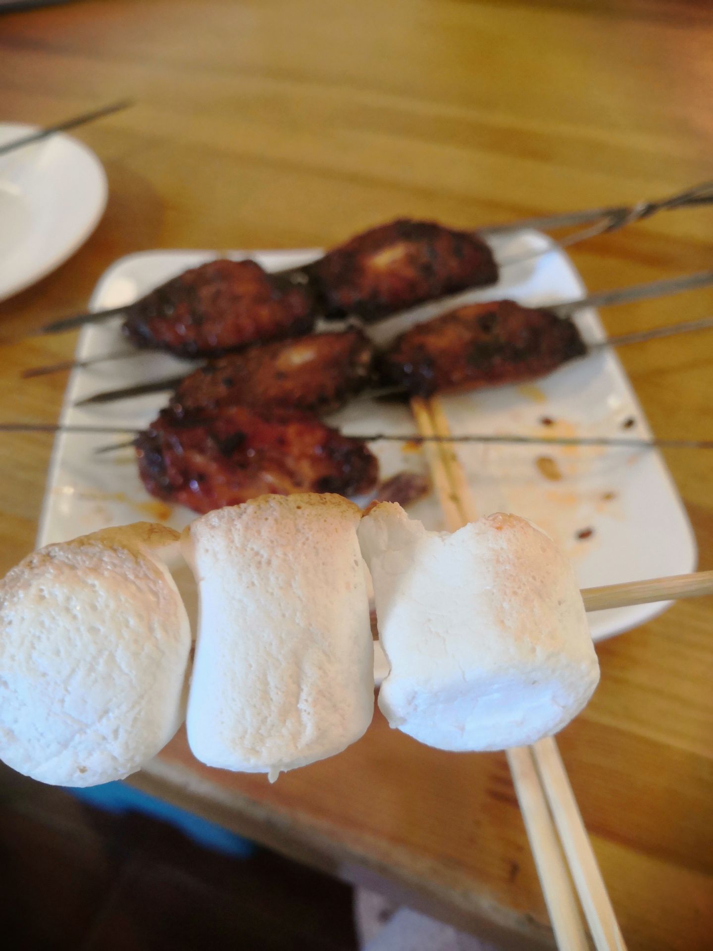 烤翅的口味很多,棉花糖也超级好吃,价格也算实惠。不过口味还算不错的真的很不好找啊,开着导航愣是来回走了两回,后来发现墙上贴了一张牌子。emmm.... 对于走道儿不看牌子的人来说太不公平了<(ToT)>不过口味还算不错的。烤翅的口味很多,棉花糖也超级好吃,价格也算实惠。
