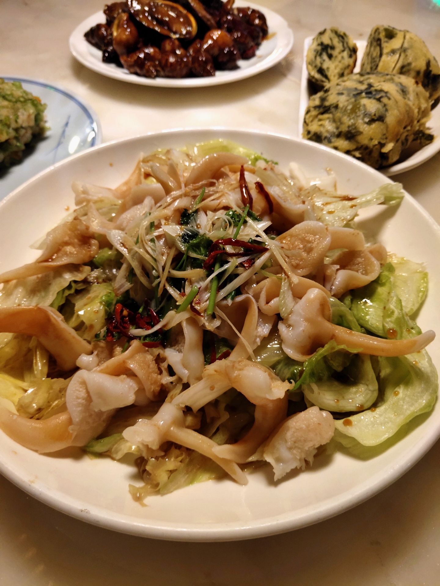 今日份午饭『日丰园』和平店; ⭐走进商场的日丰园,环境和位置的改变方便了更多食客来品鲜;所以今天拖家带口的过来了[阴险] ⭐但就|海肠水饺^的口味来讲,我还以为吃了家山寨店[发呆],跟老店没法比啊,差点不是一星半点,韭菜生的厉害,海肠也不鲜亮;吃到第一口有点傻掉,再尝一个,还是不堪[晕] ⭐|虾饼^的一面特别油,菜的颗粒切的很大粒,并且口感生硬,想点给小朋友吃的还是放弃这个想法吧!用小伙伴的话说还是君霖家的虾饼好吃[馋] ⭐其他就是正常口味,新店就是环境好过老店,带爸妈来尝尝,以后自己还是要去老店[皱眉]