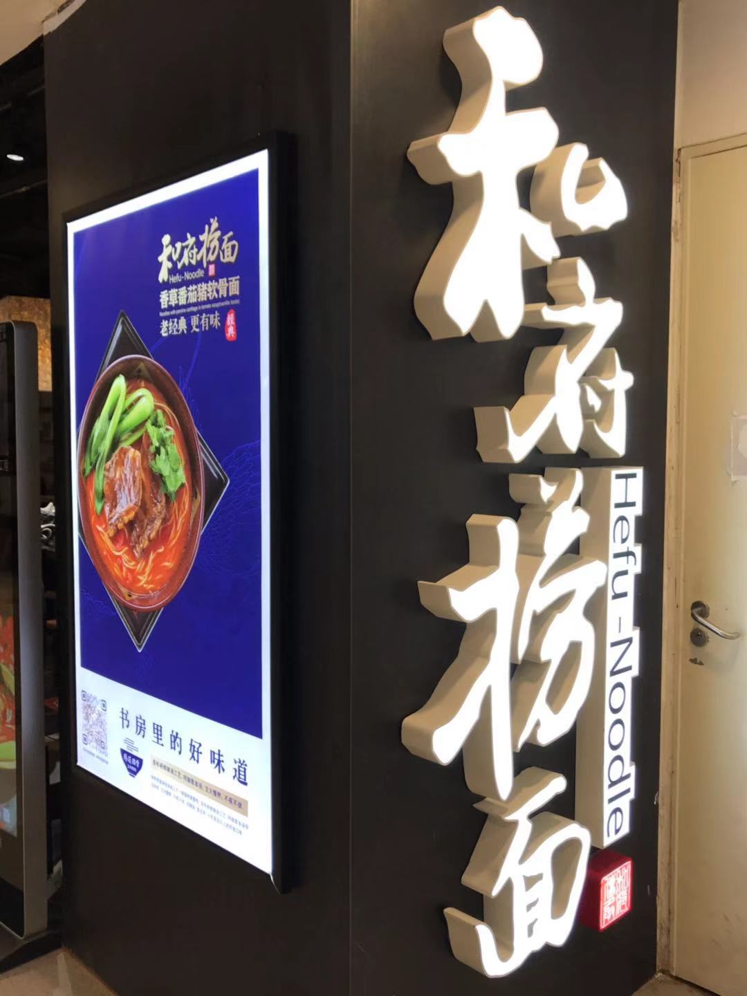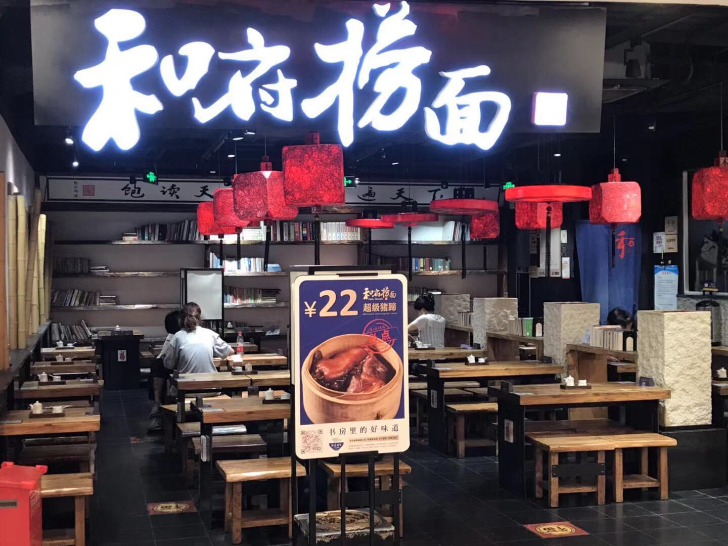 “和府捞面”是一家连锁歺饮店,它打的是“文化”的旗帜,将“和府捞面”的“和”与“文化”和书联系在一起