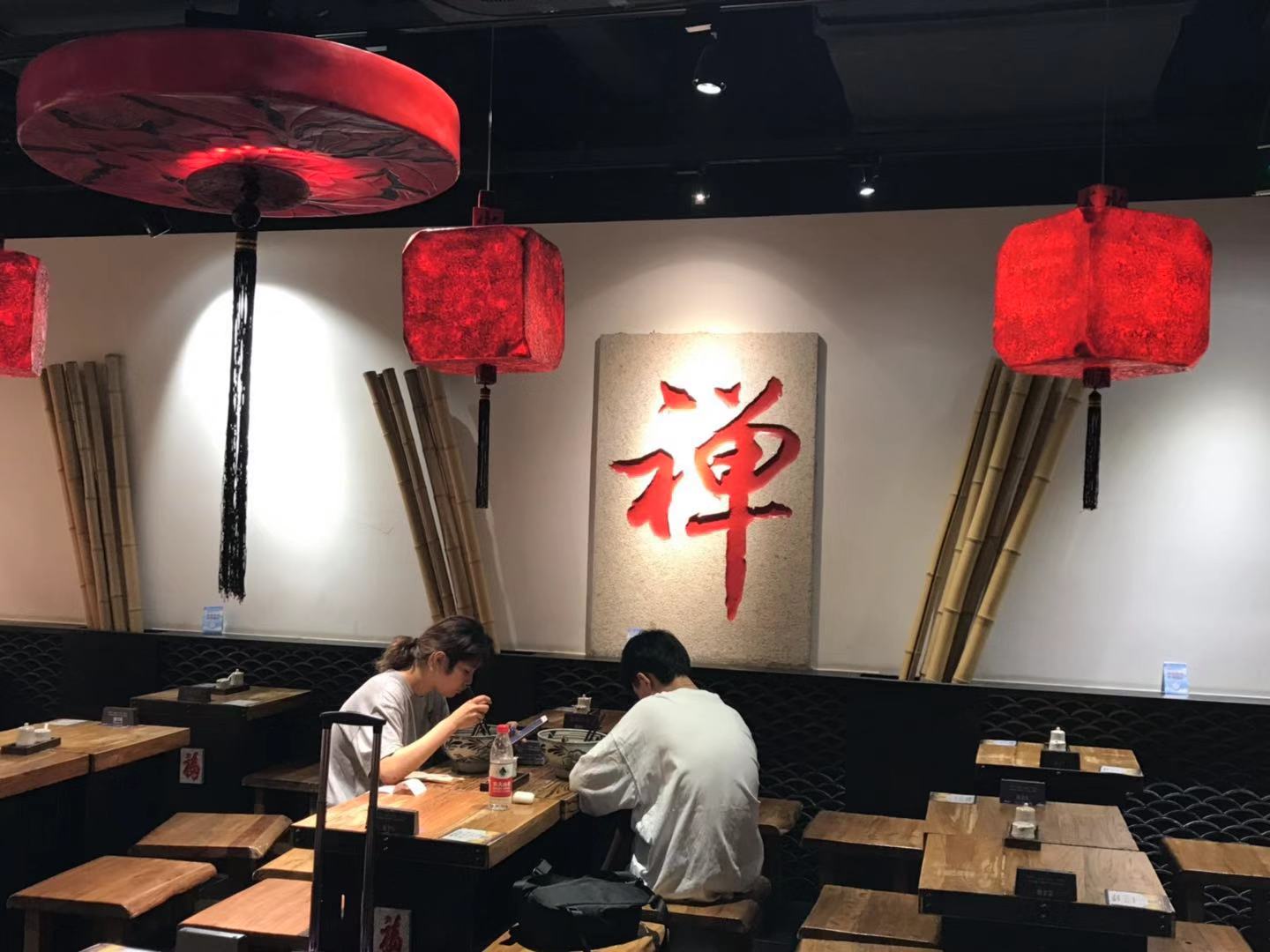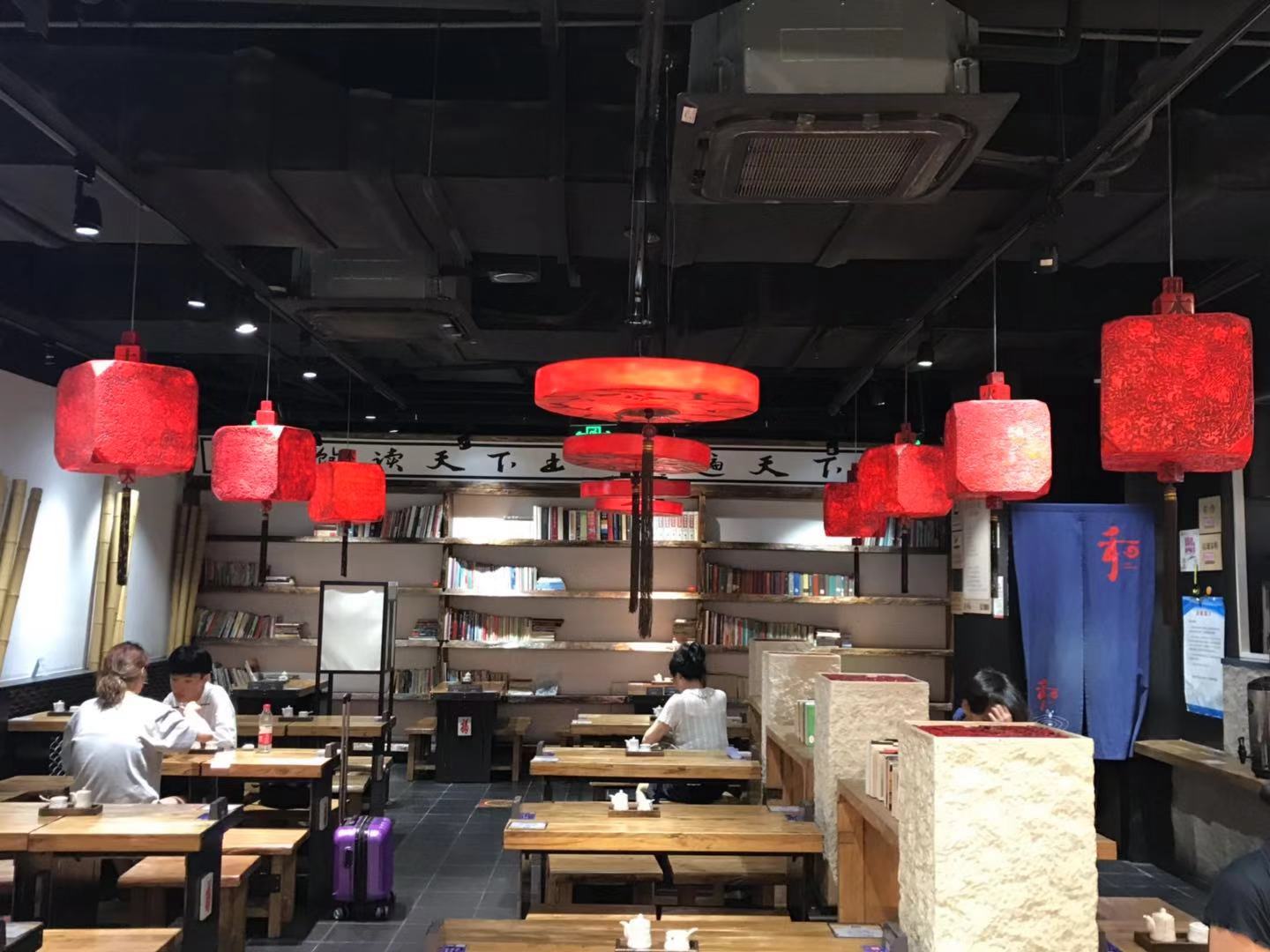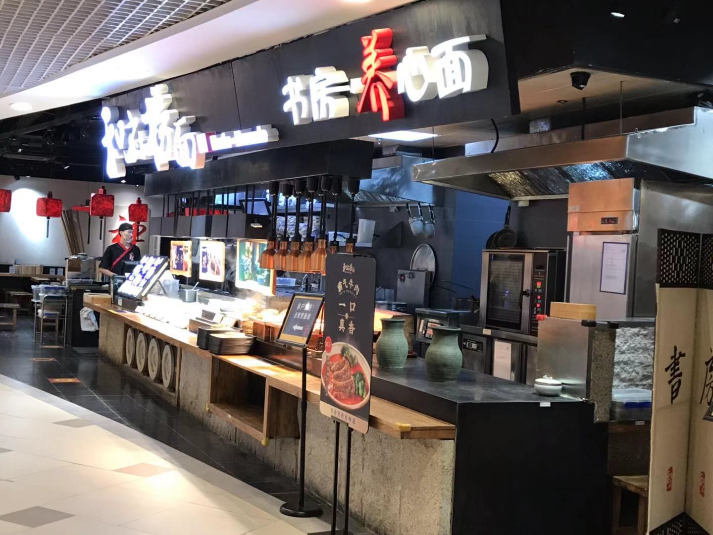 “和府捞面”是一家连锁歺饮店,它打的是“文化”的旗帜,将“和府捞面”的“和”与“文化”和书联系在一起。 你看一排石龙头吐着潺潺细流,流进“荷花池”;你看一侧墙面大红的“禅”字,似乎叙述着儒家文化;你看后侧墙面一排书架,正散发着油墨清香的“文化”......正如它店招上的点睛之笔——书房·养心面。 【口味】浓郁 【环境】优雅 【服务】热情