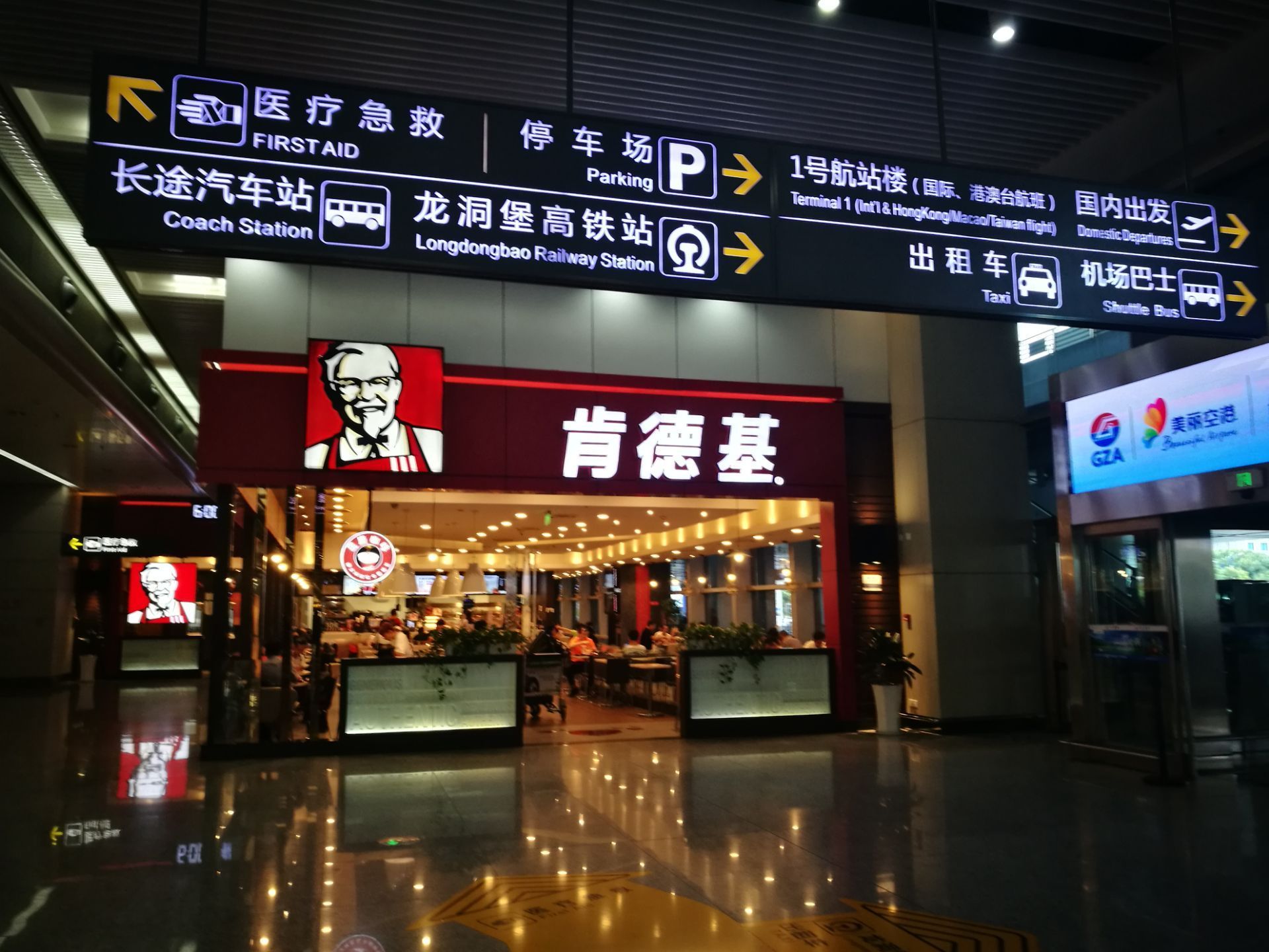 网友2019-08-25肯德基的品牌在中国的知名度还是很高的,因此来这用餐的客人不少龙洞堡机场的肯德基店在到达口的位置有一家,店面非常的明显,而且店的面积不小。肯德基的品牌在中国的知名度还是很高的,因此来这用餐的客人不少。