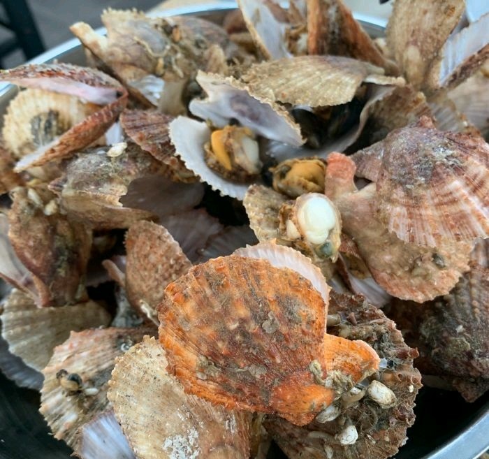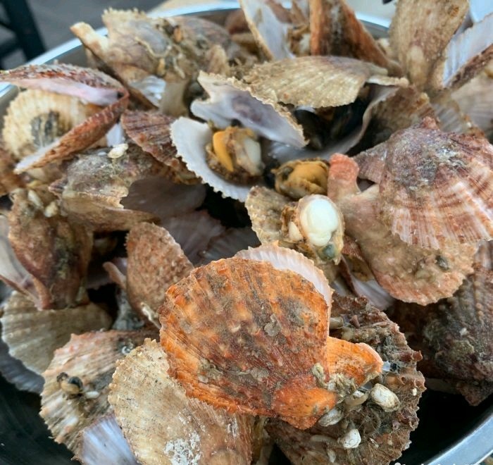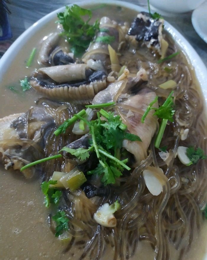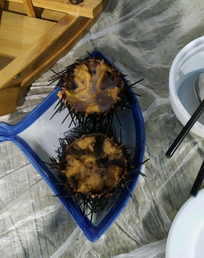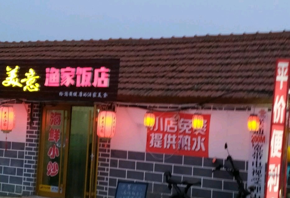从九文崖看日落出来,要走15分钟路,特意找到这 家海鲜酒店。在月牙湾和九丈崖的中间。我们点了 江谣柱剌身。海胆,老板鱼,蕃茄炒蛋。刺身很嫩 滑,新鲜。海胆也好吃。老扳鱼刺是软购。小孩也 能吃。蕃茄炒蛋量大。最后我们又加了ニ了菜。皮 皮虾,和八爪鱼。结果八爪鱼没了。最后一个菜老 板送的。吃了三四百多。这家渔家乐还能住宿。