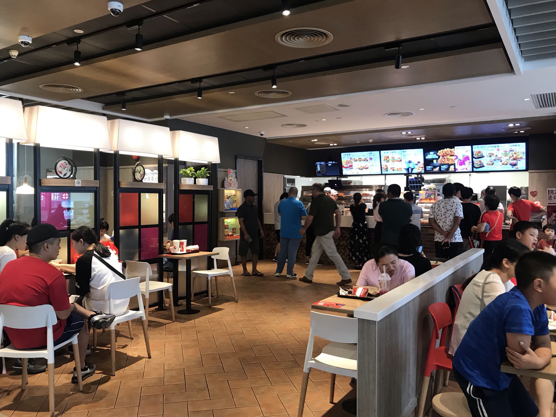 这家KFC开在光明广场旁边,一楼是甜品站,二楼空间比较大,位置很宽敞。楼道有广府文化的图画,十分可爱。 人工点餐只有2条道,点餐有点点慢,路过换了招行抢的原味冰淇淋花筒,奶香味重,香甜可口,雪糕筒脆脆的很好吃哦~!