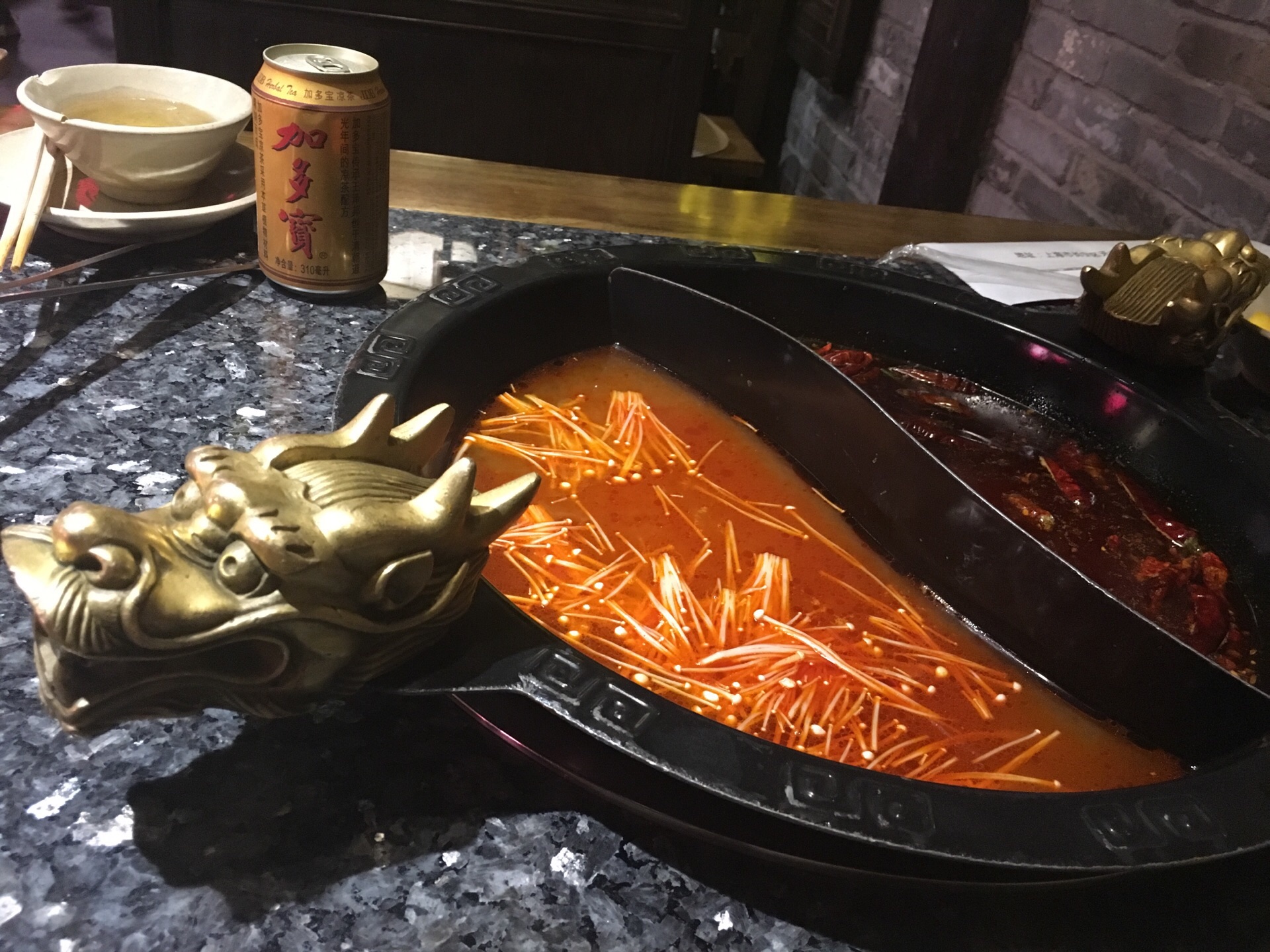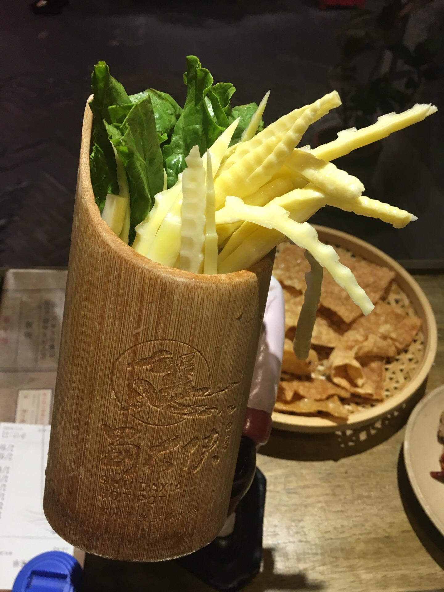 原先的热门店,现在也不用排队了。味道在火锅里算不上好吃的,上菜速度慢,加水也需要叫服务员的,就不能像其他蜀大侠店那样把茶水壶放旁边,顾客自己倒嘛 点了番茄鸳鸯锅,微辣,活杀牛蛙没动,一般活杀的都是动的。一米牛肉很老很老,吃了几片放弃了。熊猫竹笋,熊猫的造型不可爱。炸豆皮,多挺多的,豆皮上有黑点。红糖糍粑,油味太重。调料餐具收费的。
