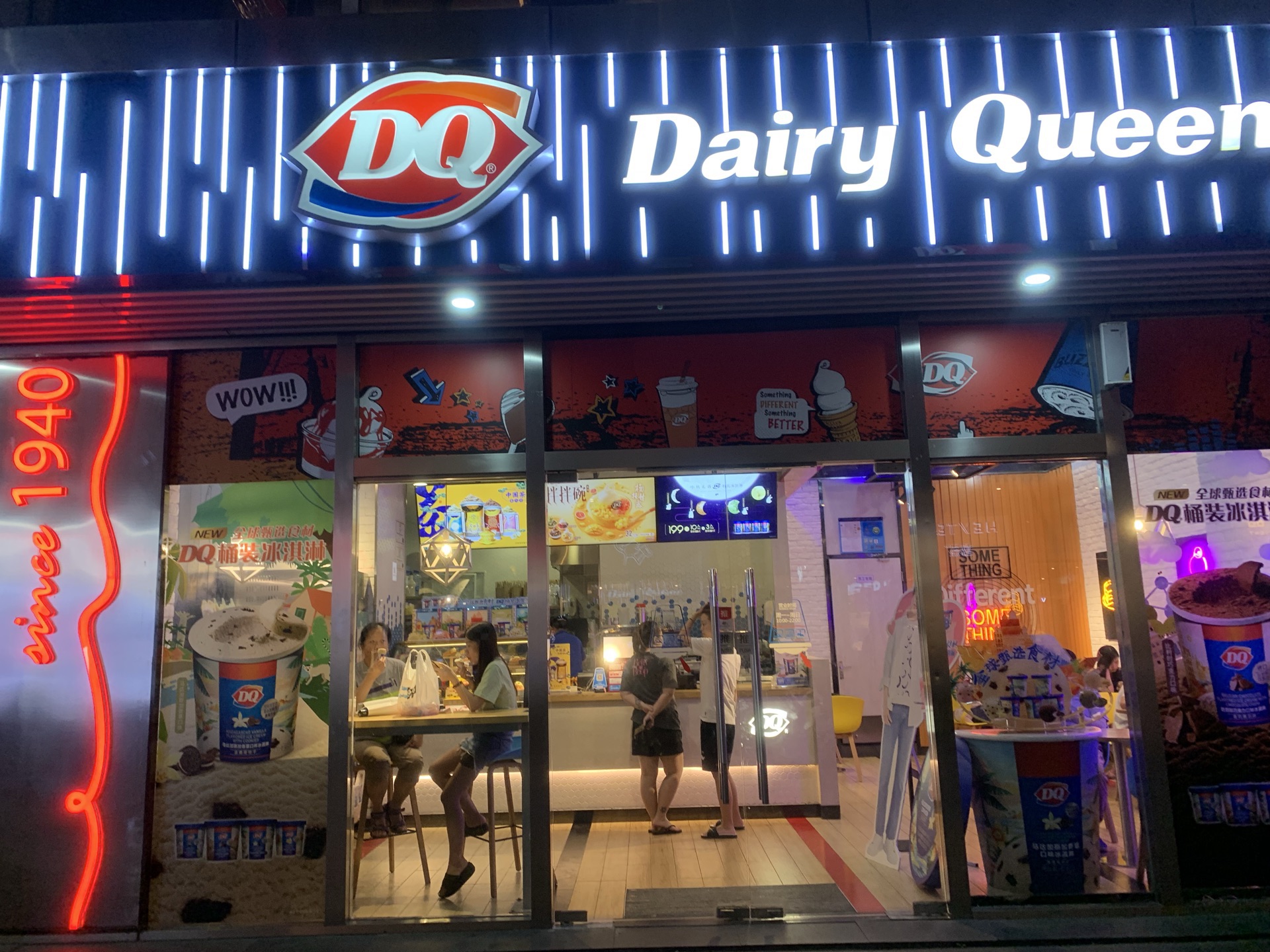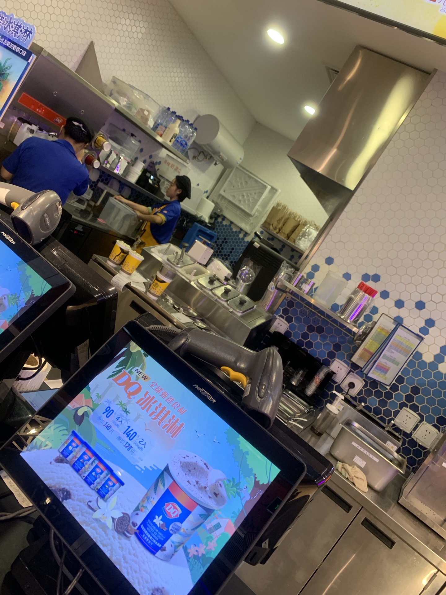工作日晚上的五角场真是人少,双休日门庭若市的DQ,不工作日晚上的五角场真是人少,双休日门庭若市的DQ,不!用!排!队!点单、核销、出品都很快,并且味道那么多年都保持口味一致,大赞! 最近新品是中国风,“茶”口味系列的冰激淋,很不错哦!