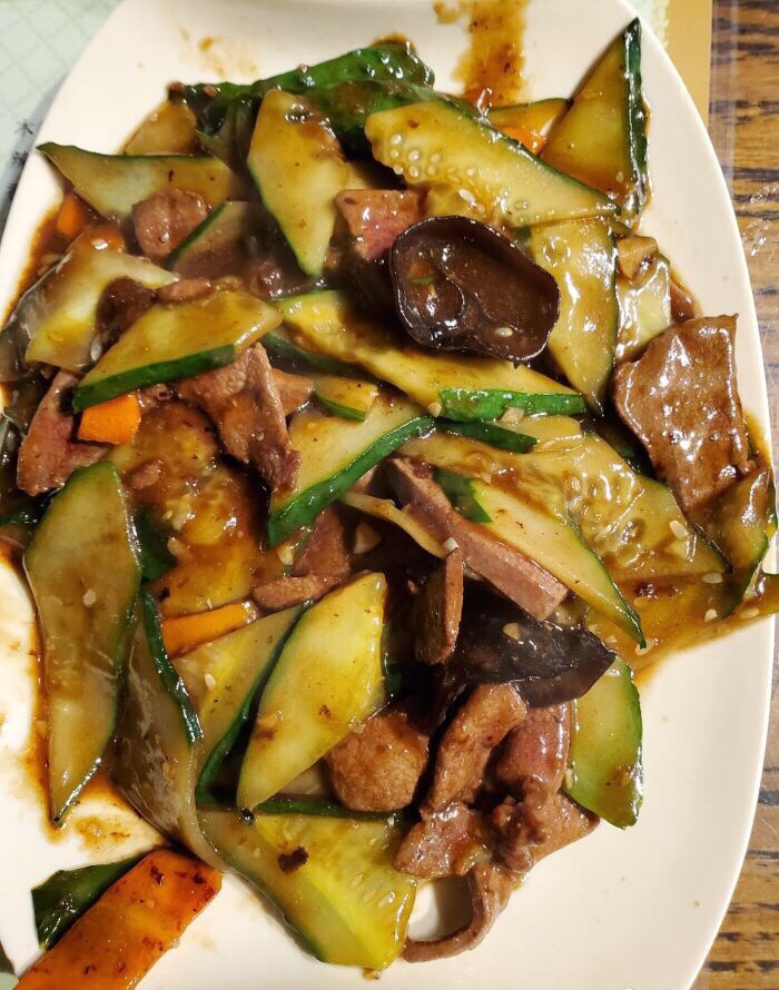 [环境]店家没太在环境上费心,店面不起眼 里面也很简单的摆放了一些桌椅,没有 过多装饰 [服务]基本靠自己,坐下后自己扫码点餐,然后自己去拿餐具。之前上菜很快,这次暑期人多,上菜相对也慢了一些。 「辣鸡心」超级爱吃这口,喜欢鸡心有嚼劲的口感,调味也合适,微微辣 「红烧茄子」他家茄子无论红烧和鱼香的都好吃,尤其适合拌饭… 「油泼扇贝」特别新鲜的口感,好吃 「干炸虾仁」看推荐点的,虾仁又大又新鲜 「炒猪肝」猪肝炒的还是挺嫩的,
