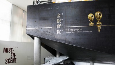 这家私人博物馆堪比国立美术馆。美术馆由三个馆组成,一号馆是瑞士设计师操刀,二号馆是法国设计师,三号馆是荷兰设计师。所以,崇洋媚外是亚洲通病。 一号馆是一个插入地面的倒圆锥形+立方体的红瓦砖似的建筑。介绍要的就是这个“城堡”的样子,示意守护传统与古代艺术不变的价值。瓦罐的颜色是为了突出韩国特色,我倒有易碎的感觉。 倒圆锥顶从建筑里面往上看是这个样子的,它将四层楼的展示空间中间形成了一个开放的环境,让自然光照射进这个“城堡”,光线被作为一个基本因素融入空间,给直线条的现代化建筑一些自然柔和的感觉。 二号馆就是那种酷酷的建筑了。显眼的“石笼墙”把建筑与自然和工业感相连。可能是地形关系,选择了山里宾馆那种沉园式设计,建筑物在下沉的“庭院”里,光从上方沿着窄窄的空间投射进来,光线与黑暗在空间里界限分明的共存。深灰色墙体,大画幅平面作品,水晶凳。它很美,但是现代化城市那种稍冷较硬的扮酷,不是喜悦奔放的,是没有色彩的。 由我看来,整个美术馆的建筑是它最美的收藏,俨然是竖立在城市中的巨大美术作品。至于展品,半小时看尽它的古往今来。大概这才是它叫美术馆,而不是博物馆的原因吧。
