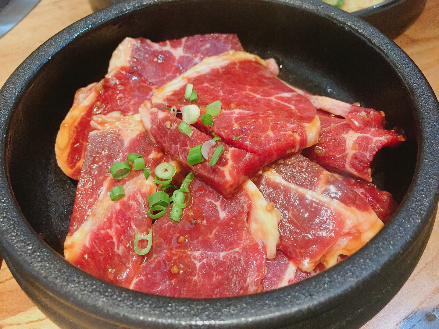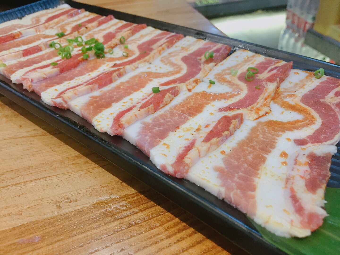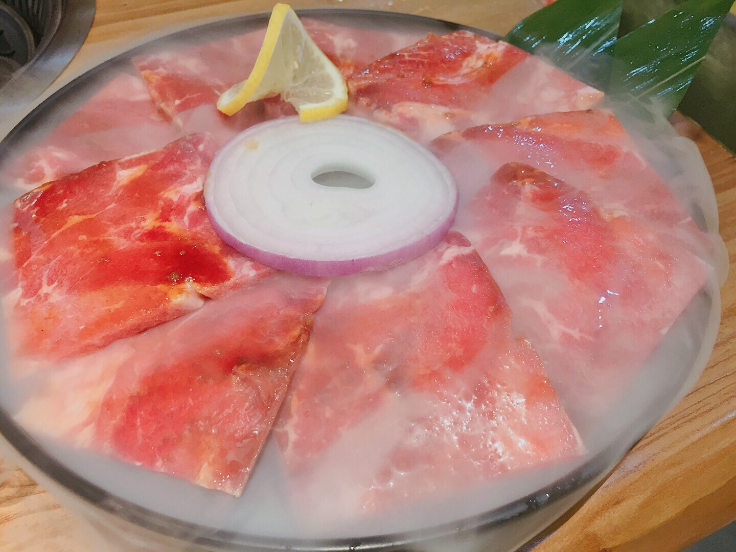#曲江银泰店#晚上和朋友来大唐不夜城步行街逛,然后准备在银泰城解决晚饭,A馆比B馆餐稍微能多点。而且还有一个袁家村美食城,但是瞄了一眼人实在太多了,而且位置紧张,真要走的时候看到这个烤肉,一看是九田家,在西安门店挺多的,于是直接进来尝尝。每桌会给提供一瓶农夫山泉水和茶叶一包,后面再加需要收费。让店里小哥给推荐了一下,比较喜欢吃牛肉,最后点一份牛肋条和一饱口福牛肉,朋友给自己点了猪五花,上菜很快,服务员先给烤一下。后面需要自己动手烤了,更换烤盘很及时。总体烤肉味道不错,服务也好!