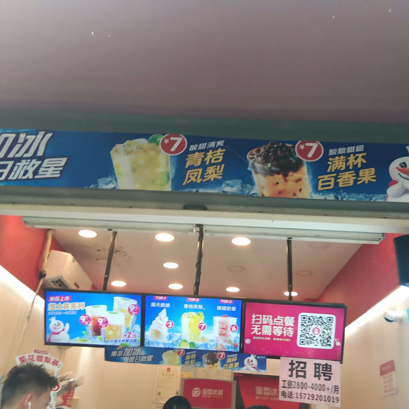 蜜雪冰城,原来桂林也有店,很开心,这家店生意很好。点了推荐的杨枝甘露,8元一杯,柠檬水4元一杯,一个圆筒冰淇淋3元,冰淇淋个头很大。味道都挺好的,杨枝甘露里面实物非常多,性价比非常高,柠檬水非常解渴,酸酸也可开胃。