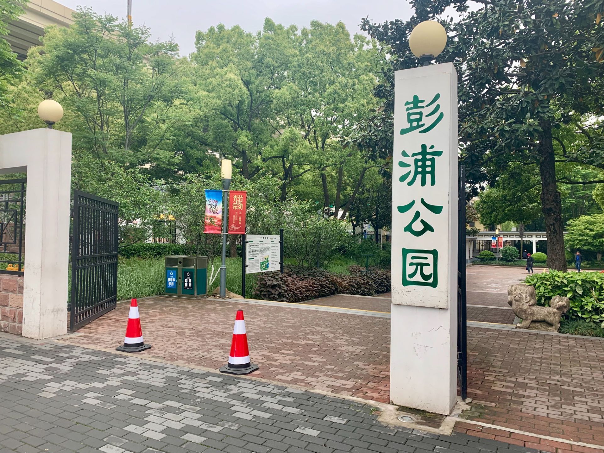 彭浦公园位于上海市彭浦乡境场中路,市辖园林,1983年3月辟建,1984年12月28日正式开放。公园以自然式布局,分成内园和外园两大部分。外园空旷开阔,入口处堆叠黄石假山,建造景墙棚架障景。内园曲折幽深,有亭、廊、棚架和竹丛、树林。位于公园大门外的黄石假山长7米,宽2米,高5米,四周种植罗汉松、红叶李、凤尾竹、十姐妹和麦冬。 公园大门东侧是座背景墙,钢筋混凝土结构,长16米,由北向南再折转向西延伸2米,高3.6米,黄色马赛克贴边,墙上有长方形漏窗。景墙西联紫藤棚架,钢筋混凝土结构,棚架朝北单挑,长11米,宽2.5米,高4.5米,四根柱间有花格窗装饰,种植紫藤两株。 公园西南角有一个钢筋混凝土六角亭,翘角,单檐,筒瓦,葫芦顶,水泥地坪,磨石子扶王靠,非常漂亮。