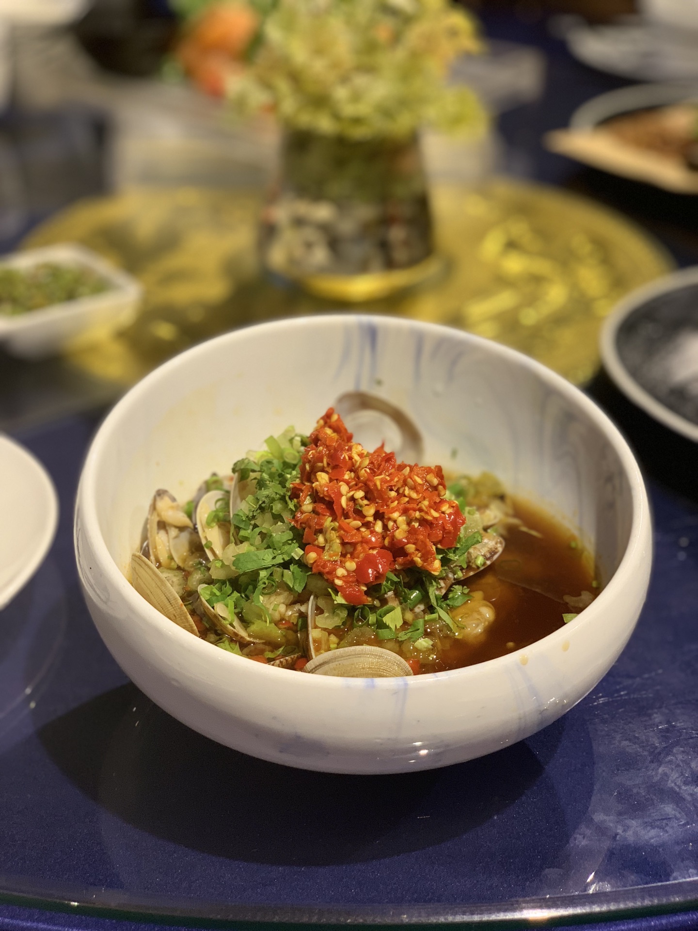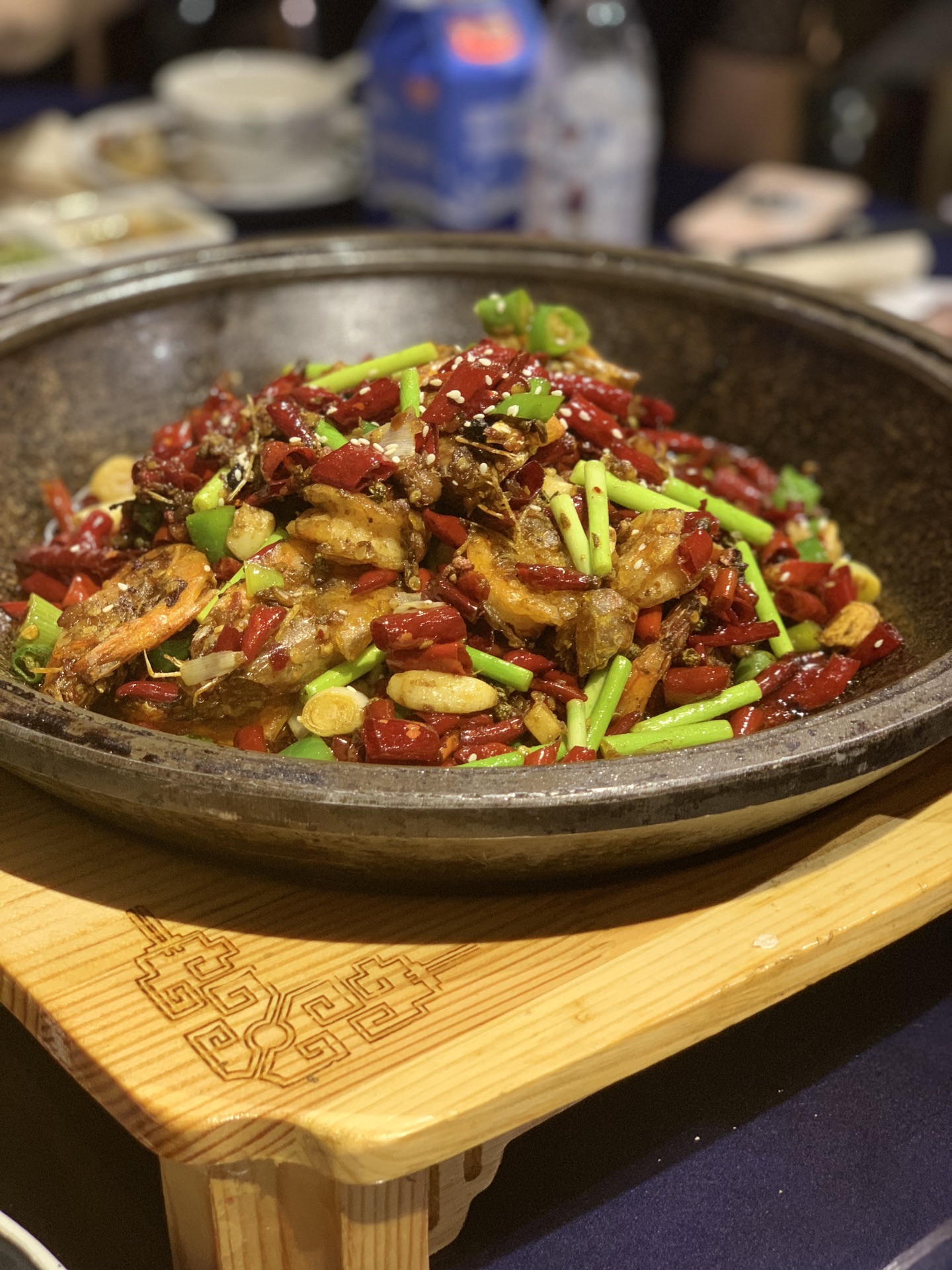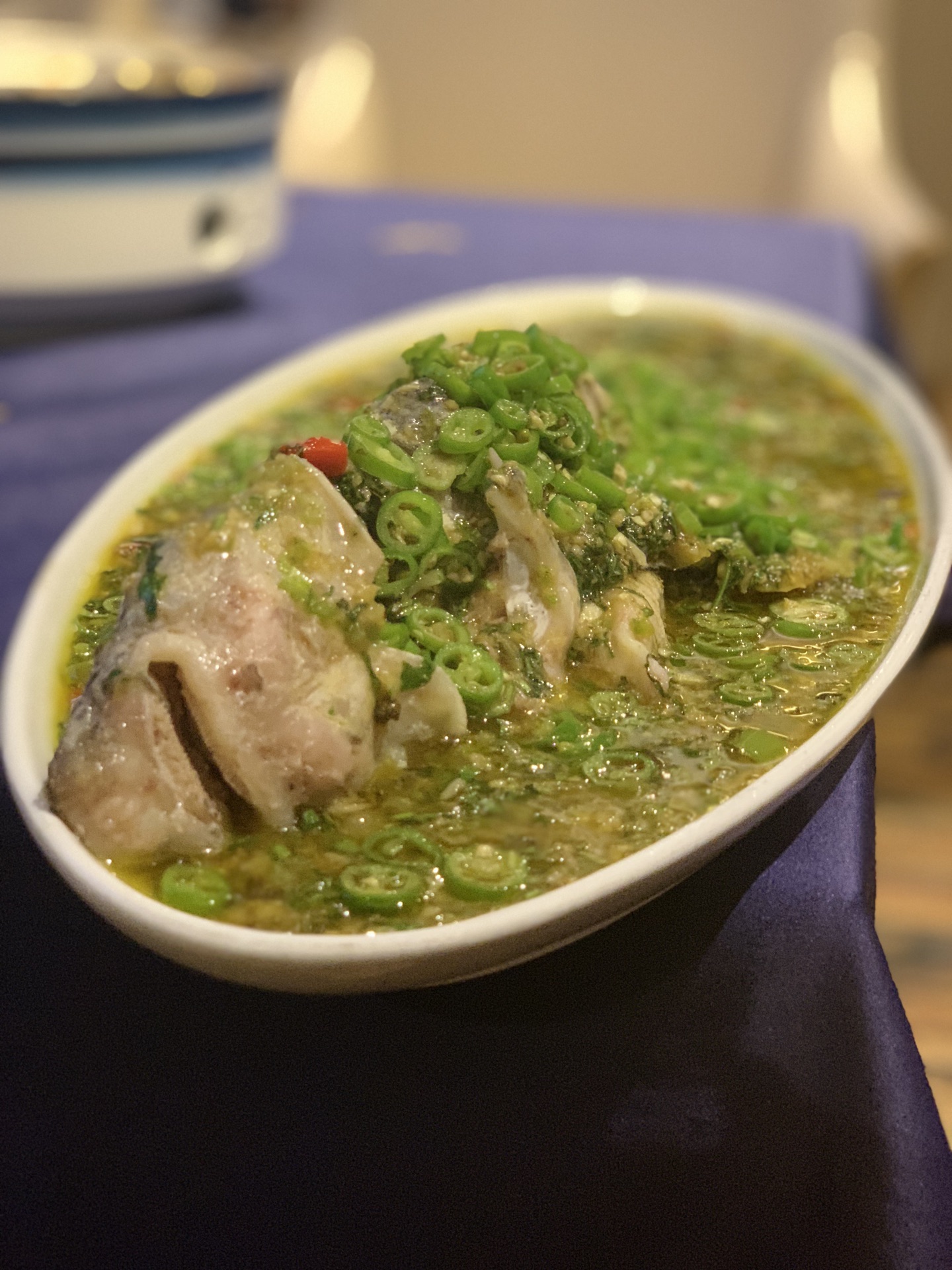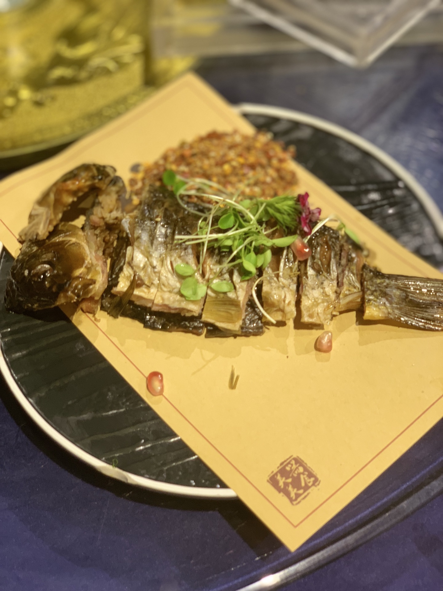 感觉最近有段时间没有吃河鲜了,天天都是火锅、串串,真的是需要好好克制一下啦~~,正好今天朋友相约,说吃江湖菜,蛮有兴趣的哦……… [位置]小店的位置不错,我很喜欢这种比较近的,哈哈哈哈。就在贝森路这边,离地铁四号线还是不算远吧。 [环境]空间不算大,但是蛮有情调的哦!中间是大露天座位,两边还有小桥流水。一排的水箱,各种鲜活的鱼摆摆~~包间的名字也是很有文化内涵的,不知简约大方,感觉不错! 「青椒江团」一道蛮别致的菜品,鱼肉真的是太嫩了,而且口感很不错,味道很棒,青椒的搭配,新鲜的江团,就是很快被吃完了………有点意思哦! 「私房泡饭」滋滋的声音,感觉好有趣啊,而且味道不错,口感很香甜的哦~~这个可以分开在小碗,味道更不错,一人一碗很巴适! 「自贡鲜锅兔」兔兔这么可爱的,但是还是要吃,毕竟这家的口感真的很不错,肉质很滑嫩,而且味道不错,麻辣的感觉哦! 「油爆双脆」毛肚与黄喉的搭配,爆炒的感觉很棒的哦,特别是拿来下饭,真的是很有意思,里面的辣椒味道不错,建议可以尝试一下! 总体上觉得的蛮不错的啦,江湖菜,吃鱼摆摆,真的是可以的啦!!!